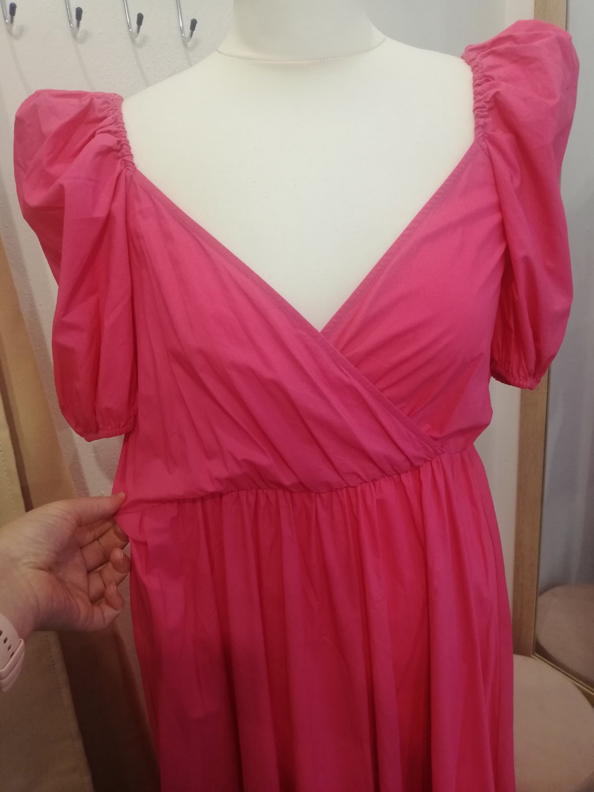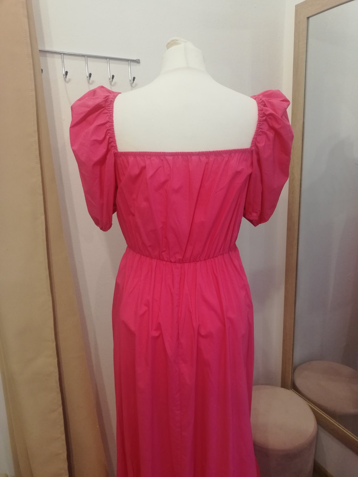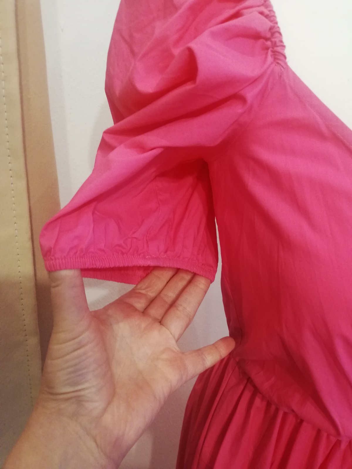 Krásne ZARA šaty, v páse na gumičku. Rukáv tiež na gumičku aj hore je gumička takže rukáv nepadá. Super sa prispôsobia, sedia na veľkosť S, M, L. Sukňa padava, nenaberá objem, čiže šaty nerozširujú postavu, práve naopak všetko zamaskuju. Su ľahké, krásna ružová farba.