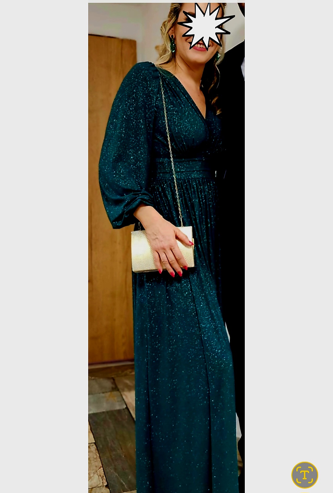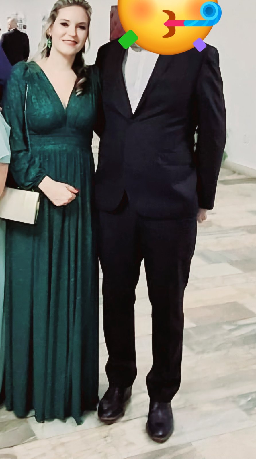 50% nylon, 50% taffeta, smaragdovo zelenej farby ,2x použité.Pôvodná cena 180 eur. Cena je bez poštovného.