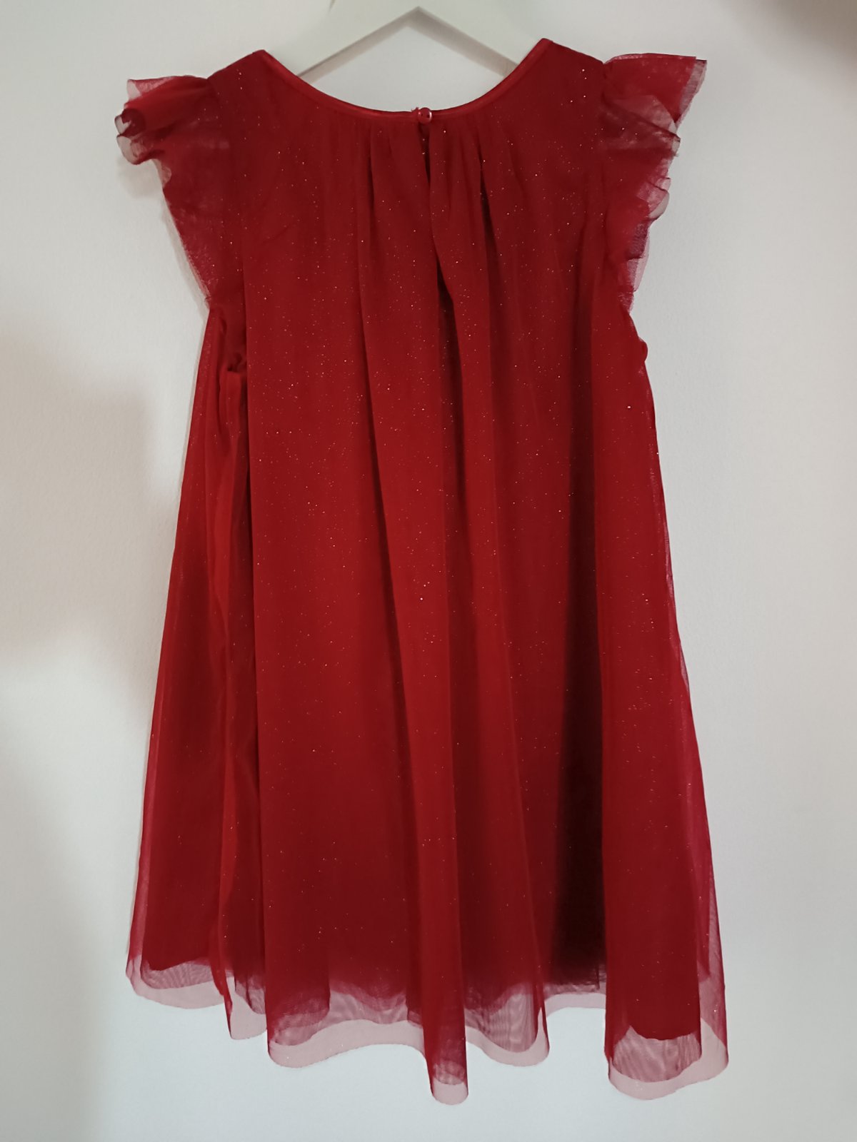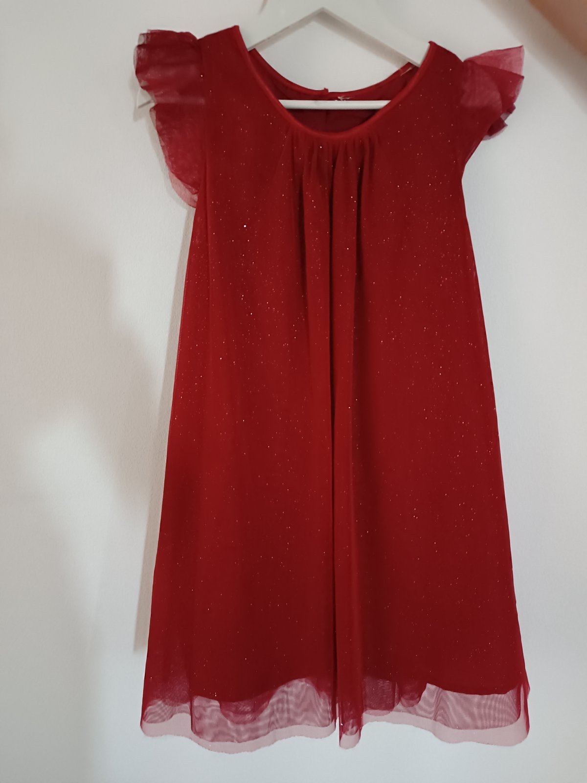 Krásne šaty nepoškodené. Veľkosť je uvedená 134, ale treba sa držať merania. Ja som radšej radila do 128.