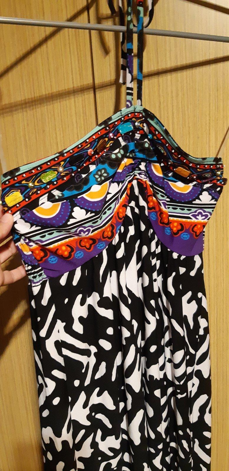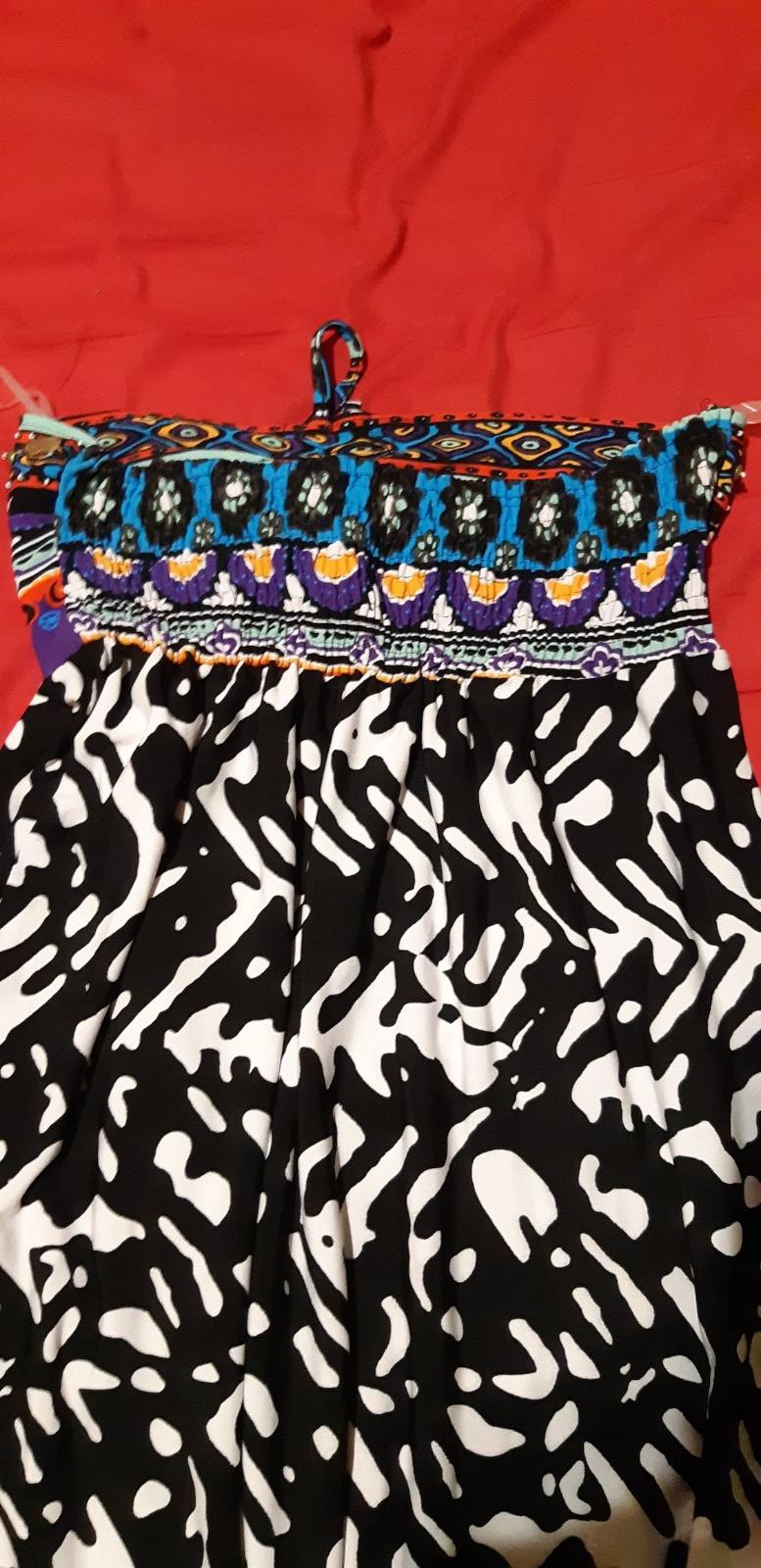 Predám krásne dlhé saty na prsiach kamienky.da sa nosiť aj bez aj z ramienkami. Viaže sa to do krku vzadu zabyckova guma šírka 37 dĺžka 131