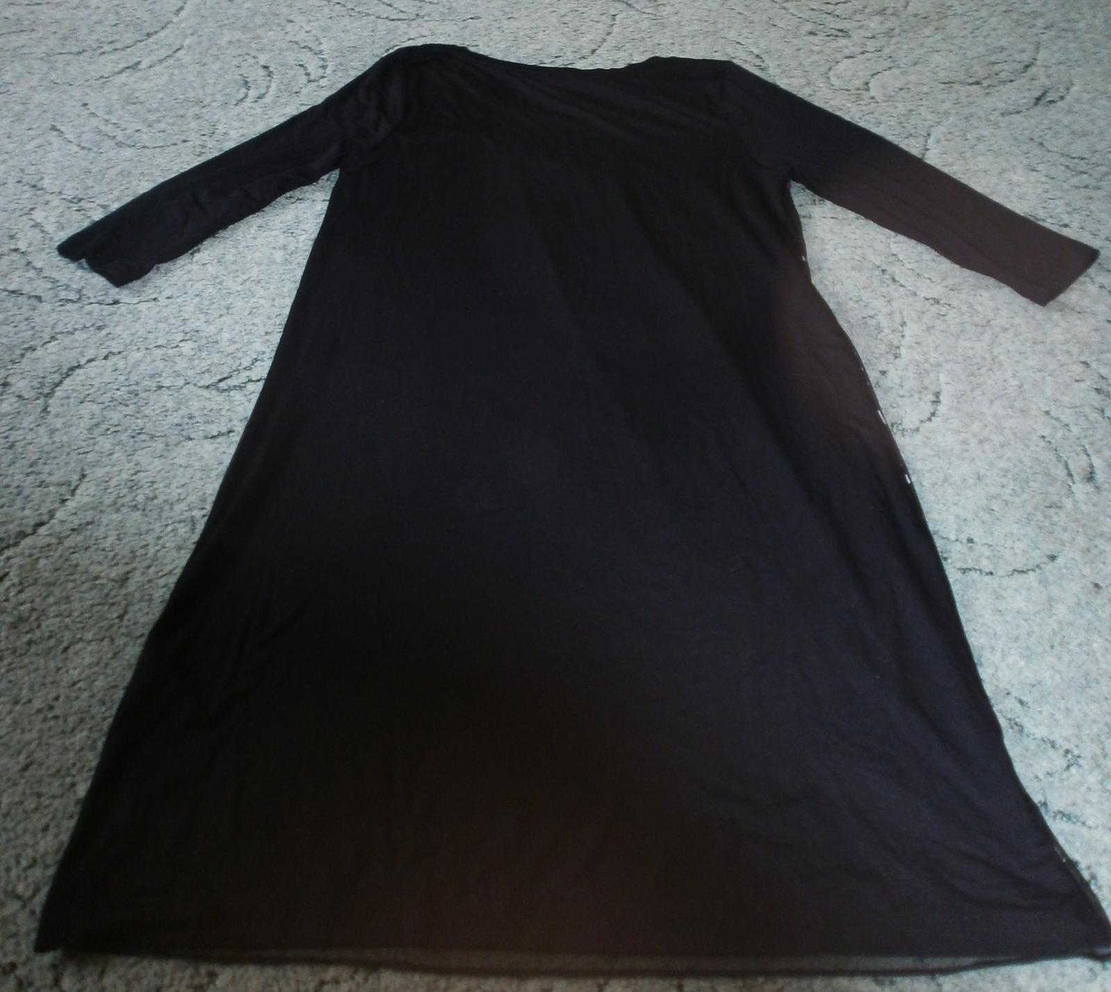 Čierne šat prijemneho materiálu spodná časť užšia,vršok voľnejší pekne zakryje bruško