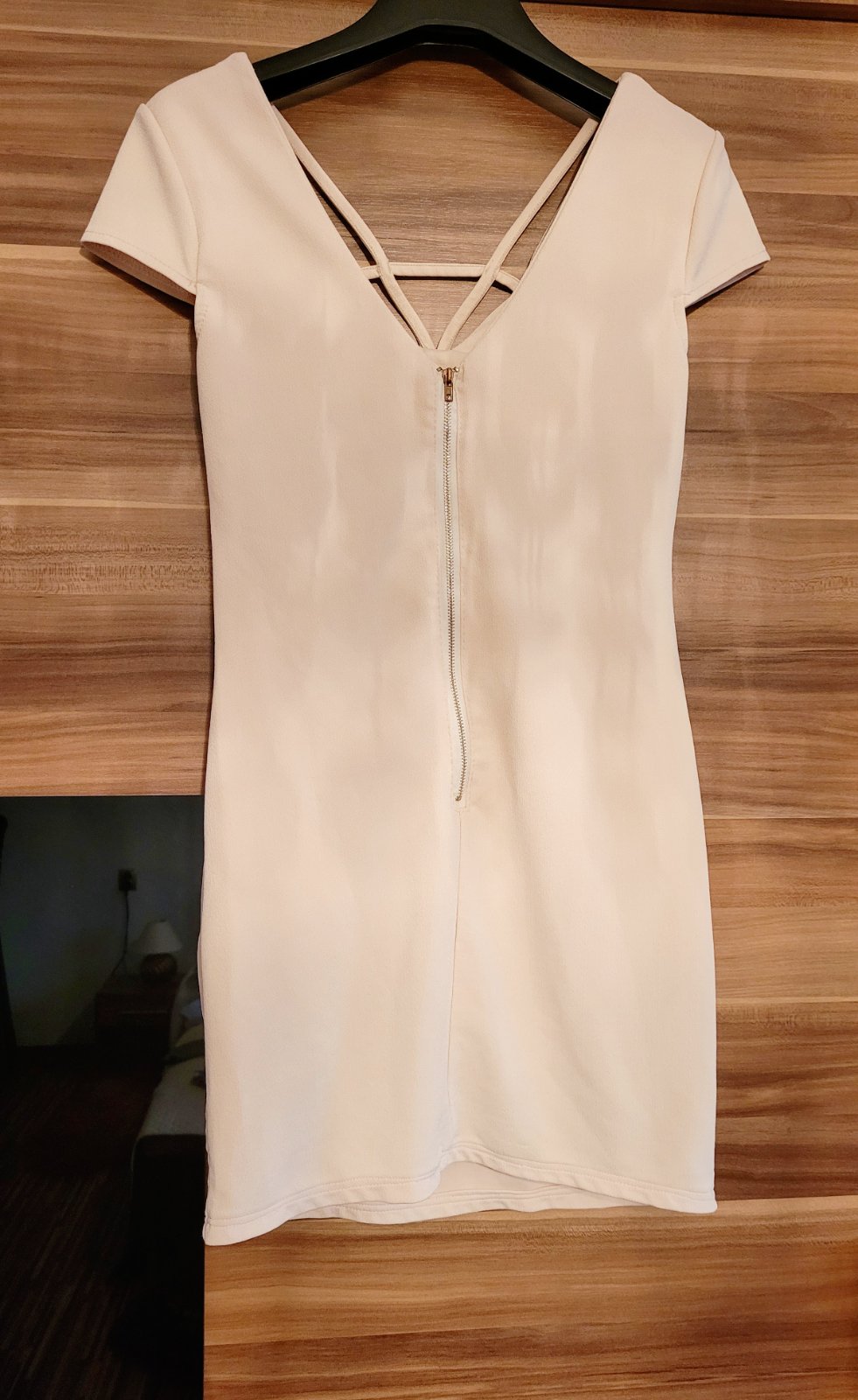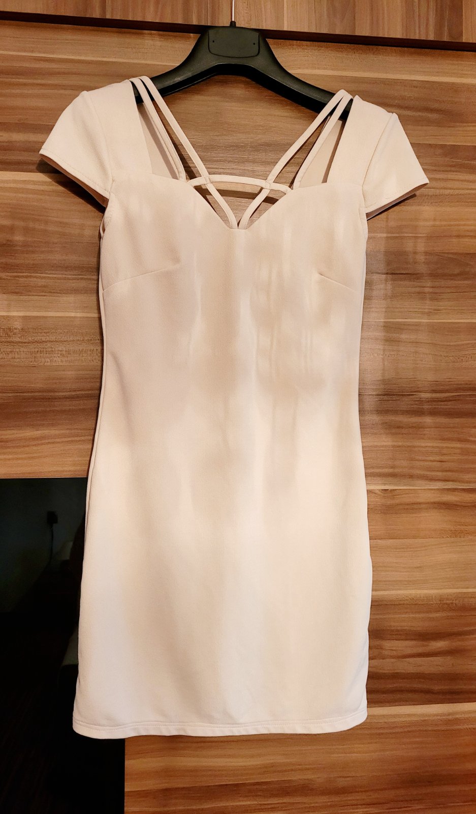 krásne bežové šaty, lesklé, padavé, vzdušný materiál dole sa dajú stiahnuť šnúrkou a rôzne prispôsobovať veľ, XS-S