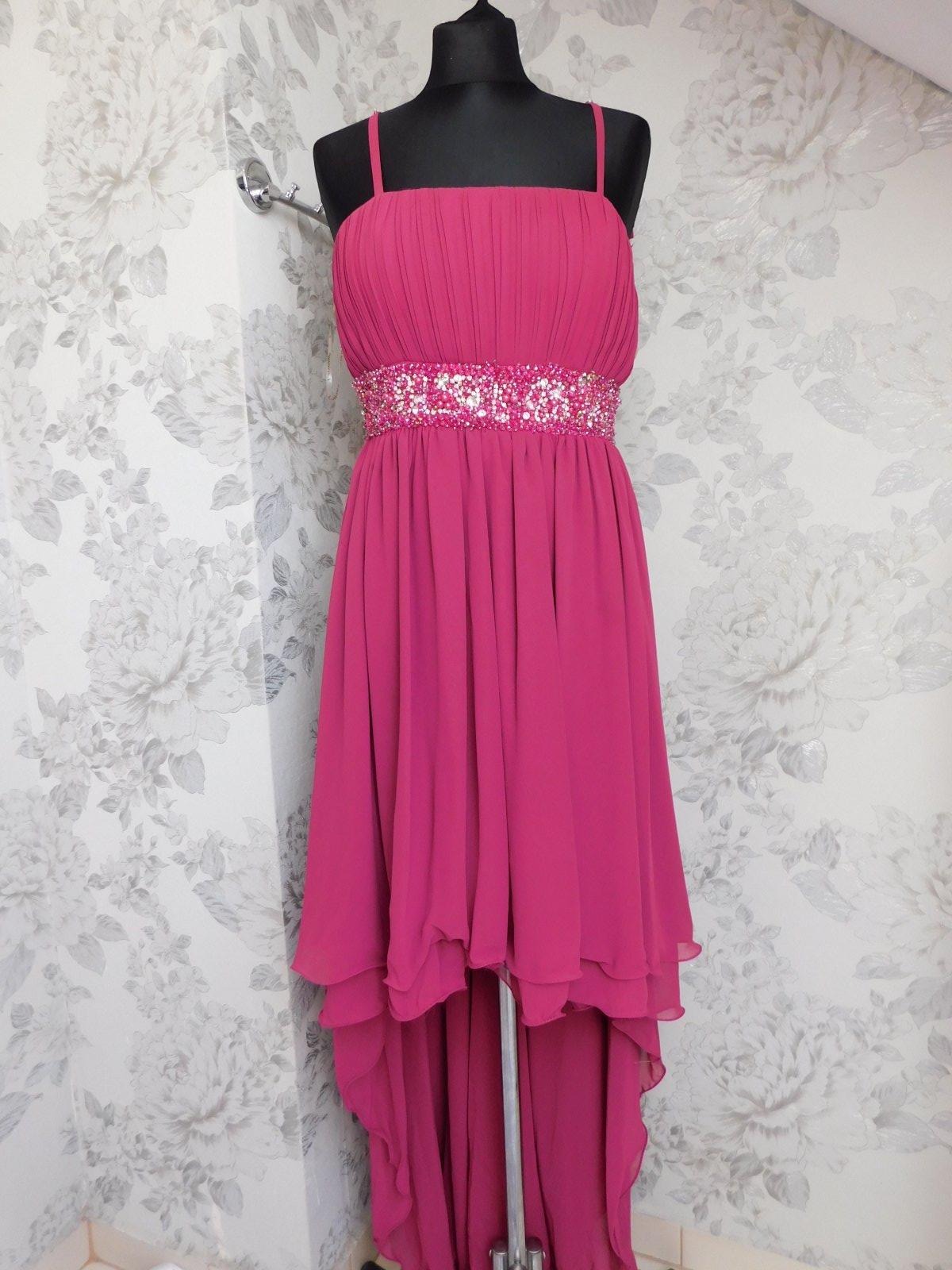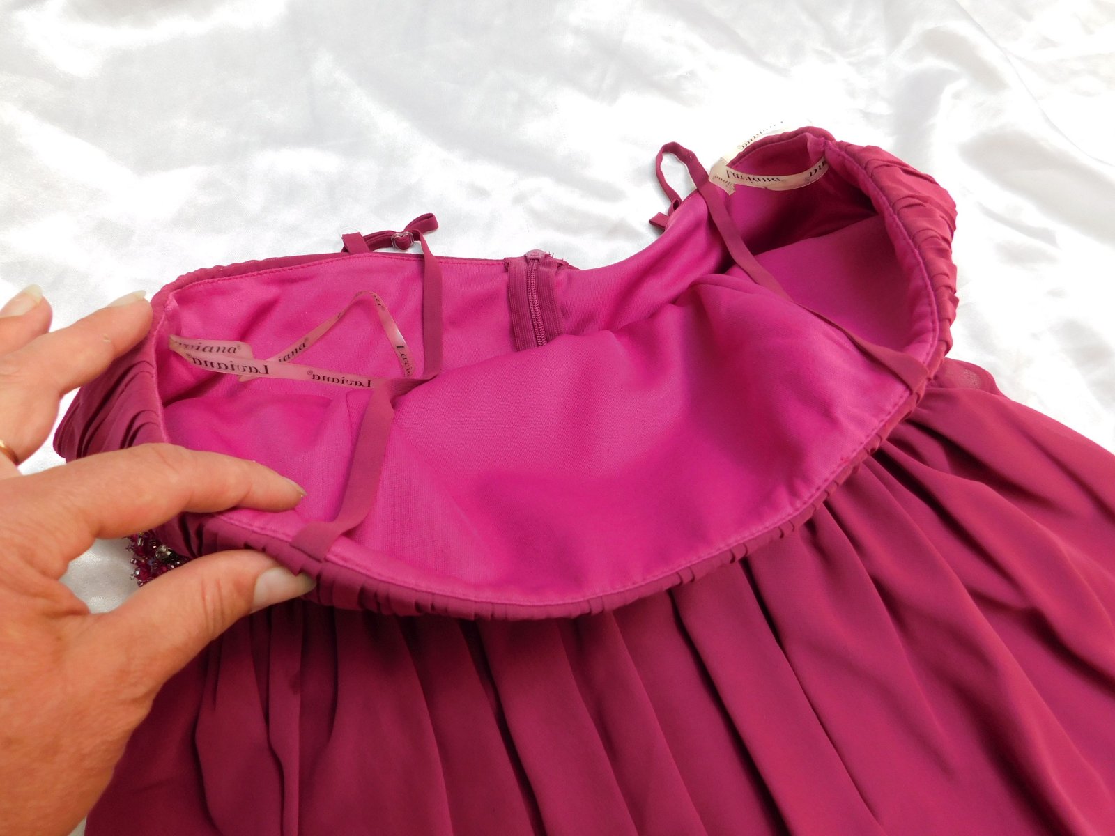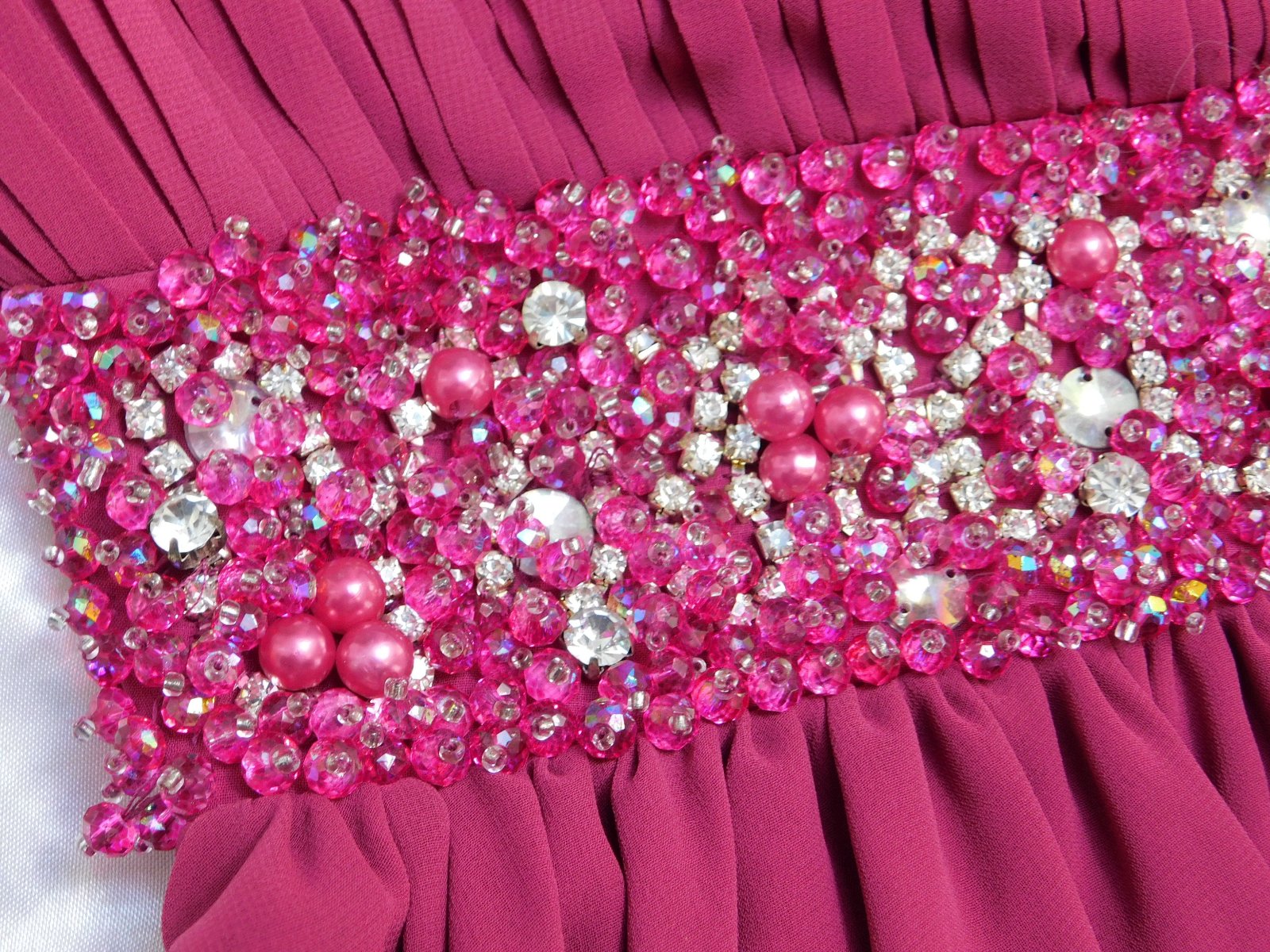 Velmi pekne šaty na slavnost,magenta farby,vpredu vystužene,s podšivkou,vzadu zips,vpredu zdobene ligotavymi kamienkami a koralkami.ako nove. d16