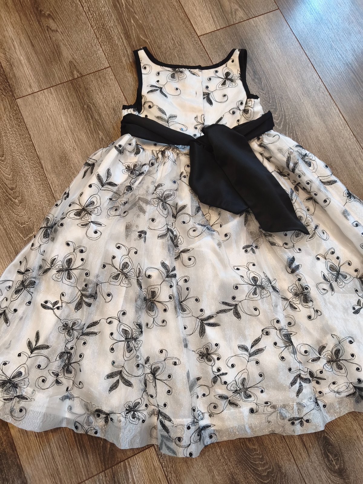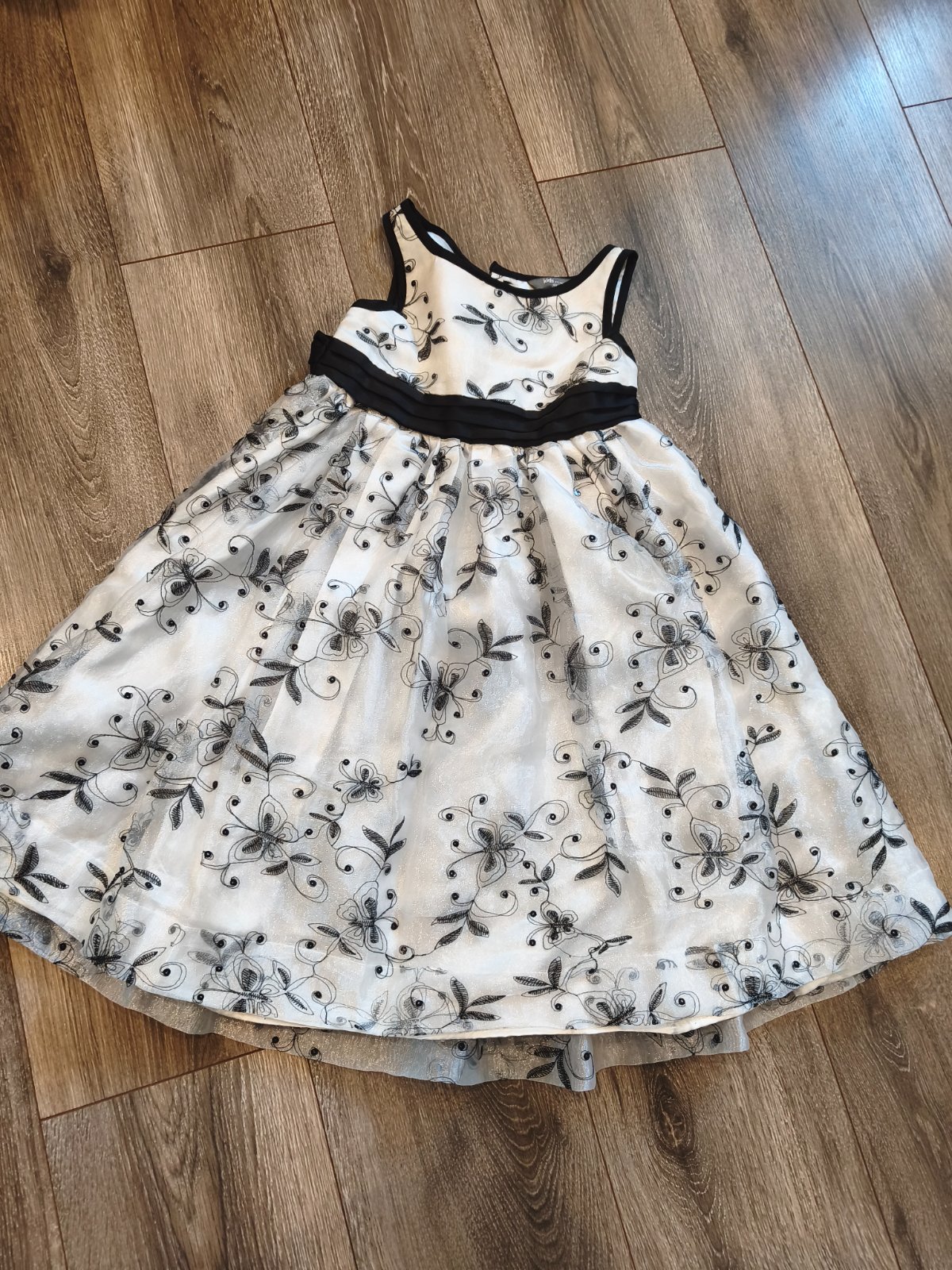Krásne šaty s flitrovanou labuťou a “zlatým” pásom. Tylová sukňa (podšitá) a rukávy. Super stav, oblečené párkrát. Veľ.122/128
