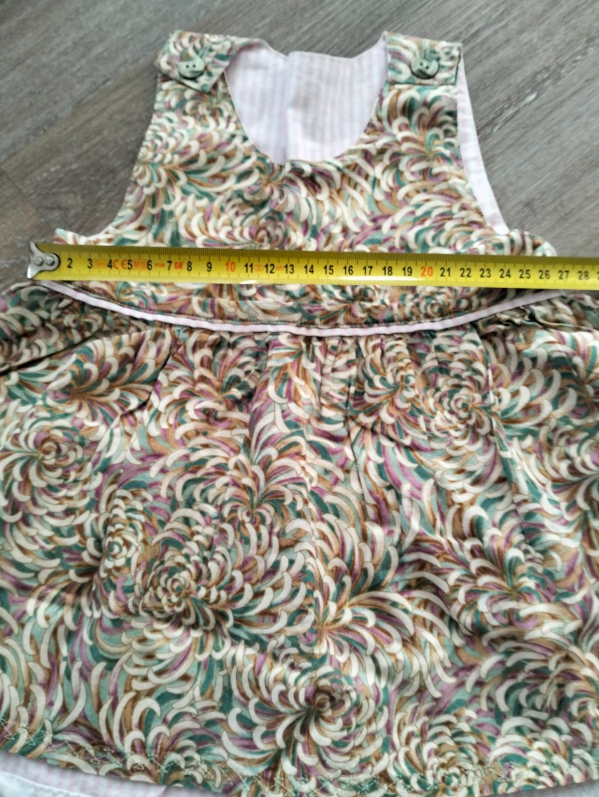 Šité doma. Kvalitná a pohodlná látka. Vhodné pre ročné dievčatko. Na bežné či slávnostné nosenie. Miery na foto. Nosené ale vo veľmi dobrom stave. Cena 6€ plus poštovné