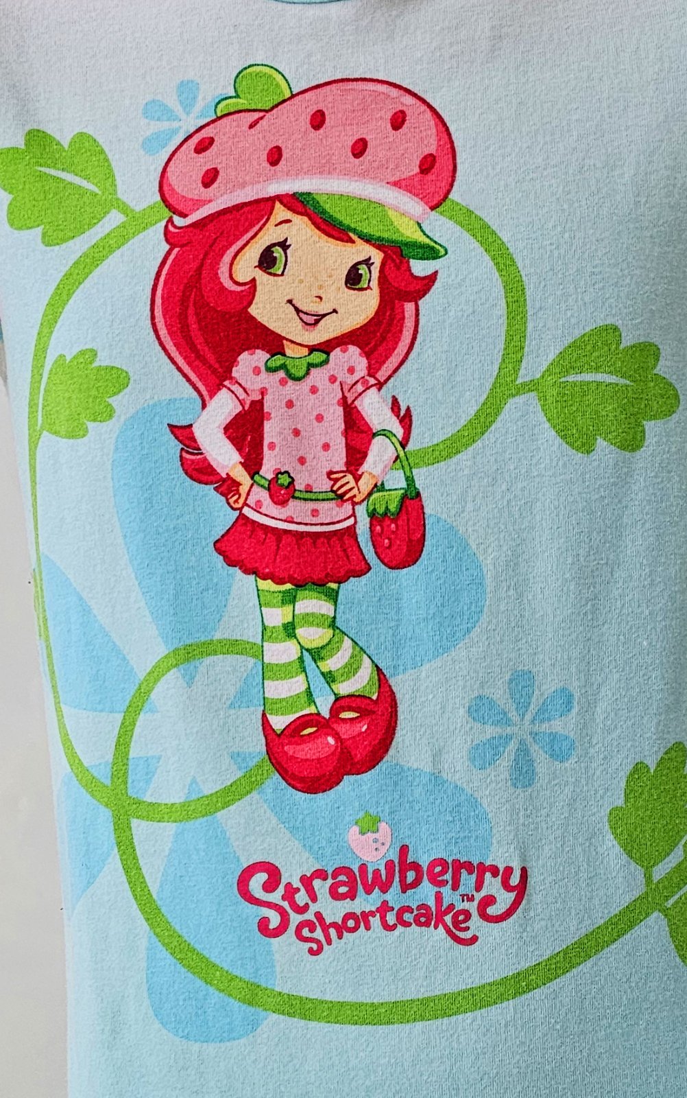 Výborný stav. Dĺžka 58 cm. 100% bavlna. Na bokoch vrecká. Zn. Strawberry Shortcake.