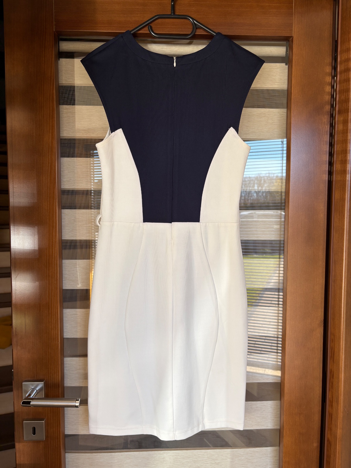 Priliehavé elastické minišaty v super stave. Nie je napísaná veľkosť, ale je to skôr S, M. Ramienka sa dajú dať na plecia, aj cez plecia. Zadná dĺžka 73 cm, predná 69 cm, šírka cez prsia cca 35 cm....