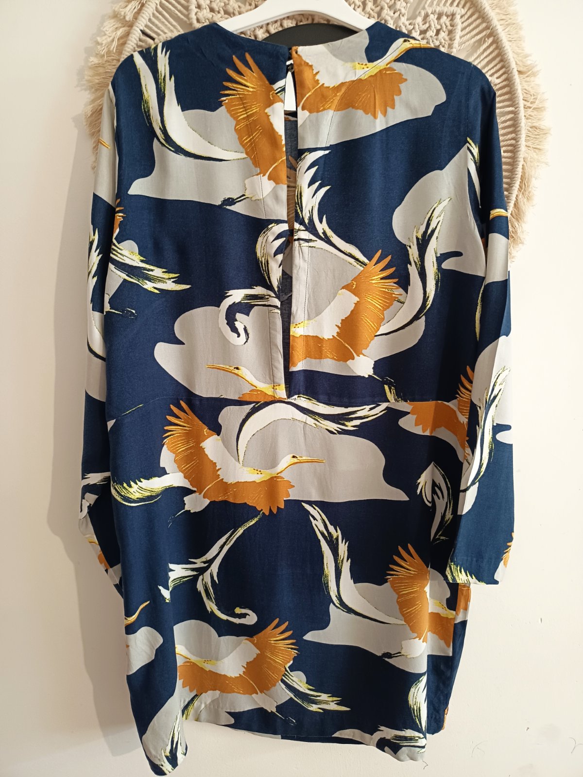 RAZ oblečene.Zloženie=65%-viskoza 5%-elastan 40%-polyamid. Dlžka=87cm,sirka v podpazi=47 az 57x2cm,sirka cez pas=43x2cm,rukáv=51cm.