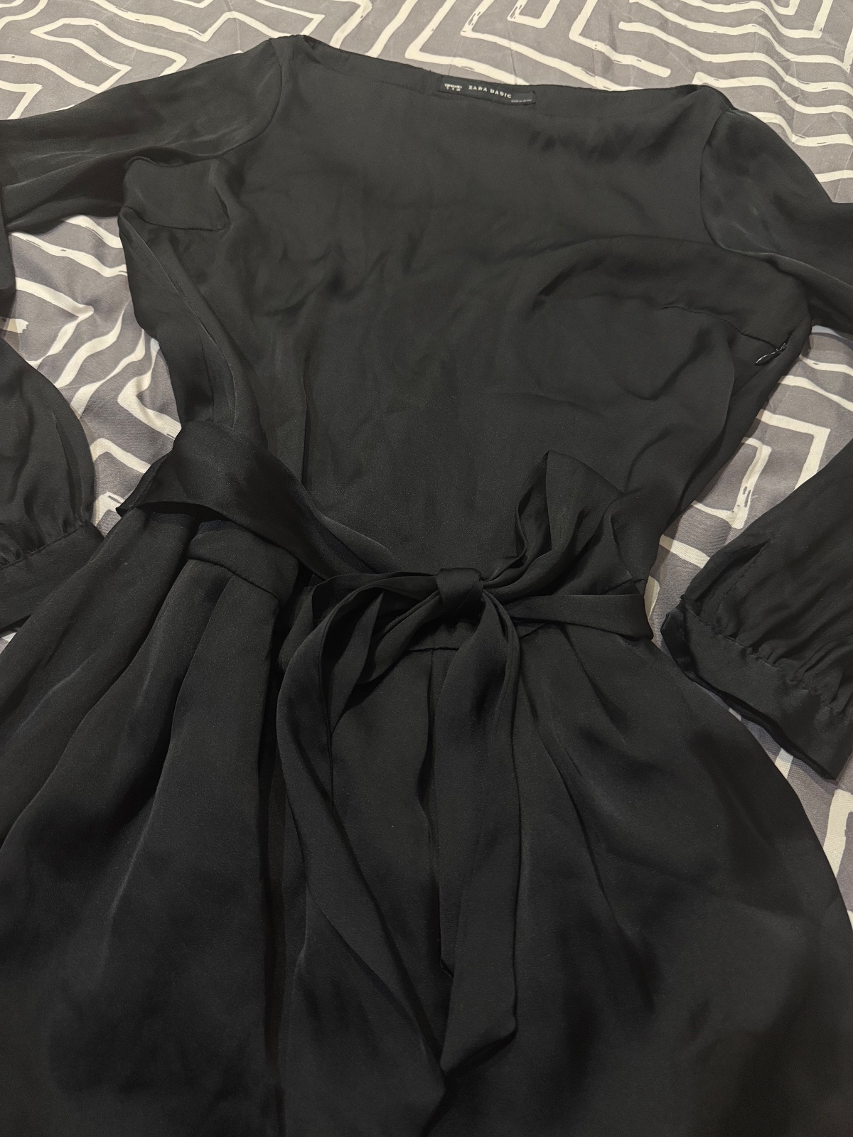 Predam cierne saty znacky Zara, parkrat oblecene, za 9 eur, velkost S. Na boku siat je zips na zapinanie.Dlzka: 83 cm. Material: 49% bavlna, 47% polyamid. Povodna cena bola 40 eur.