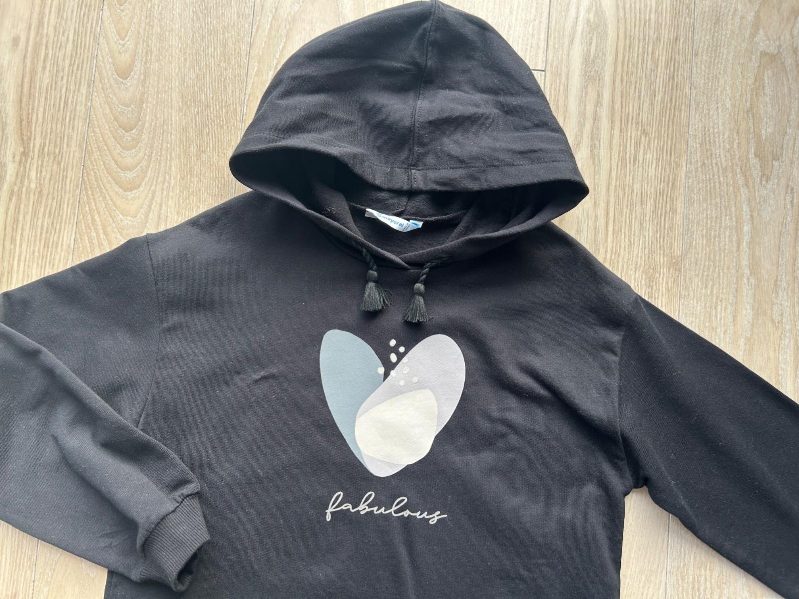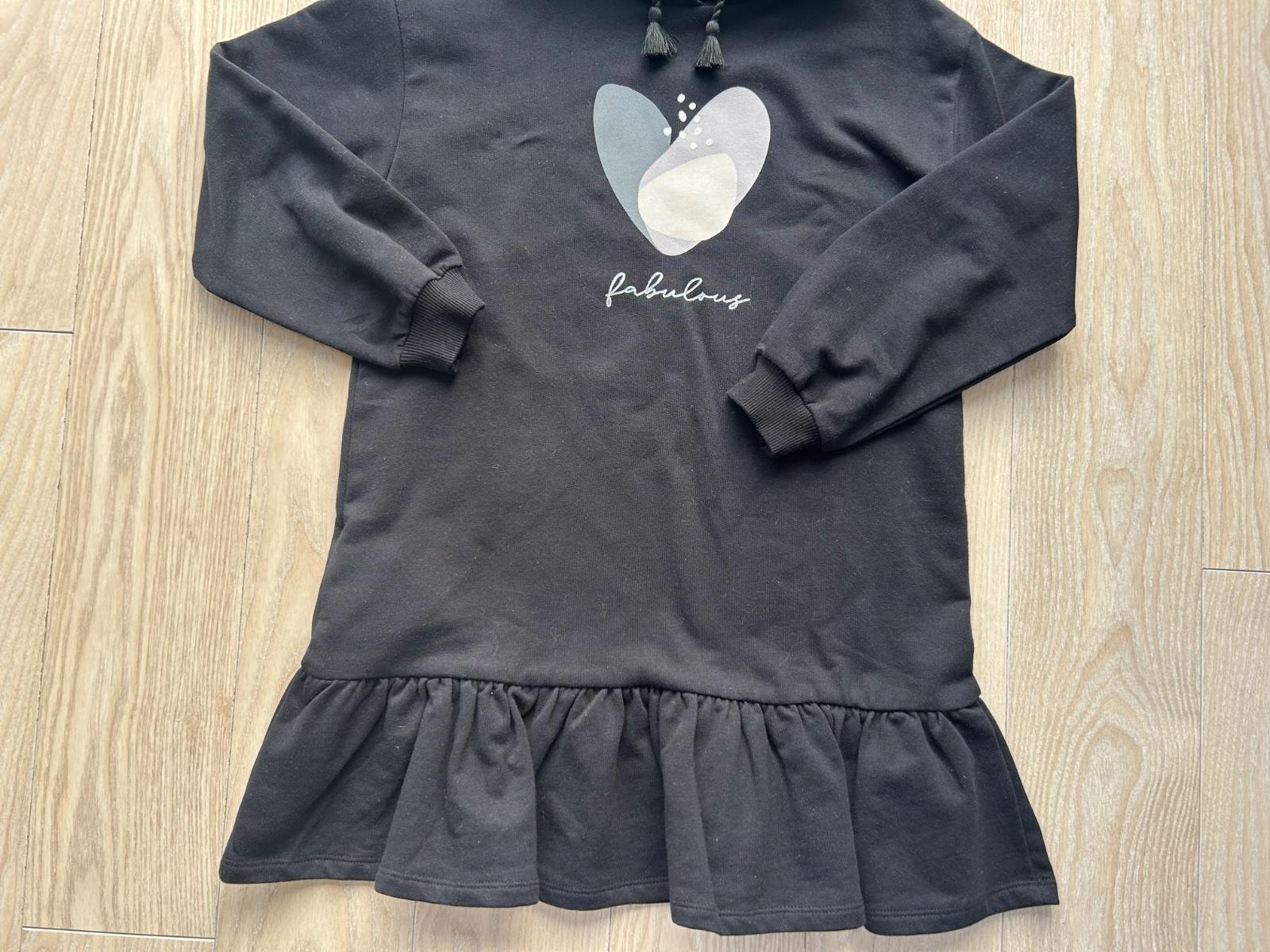 Krasne bavlnene saty s kapucnou, skvely pohodlny strih, syta cierna farba, k leginkam, pancucham, krasne sedia, vhodne aj ako darcek, bez poskodeni a vad, ako nove