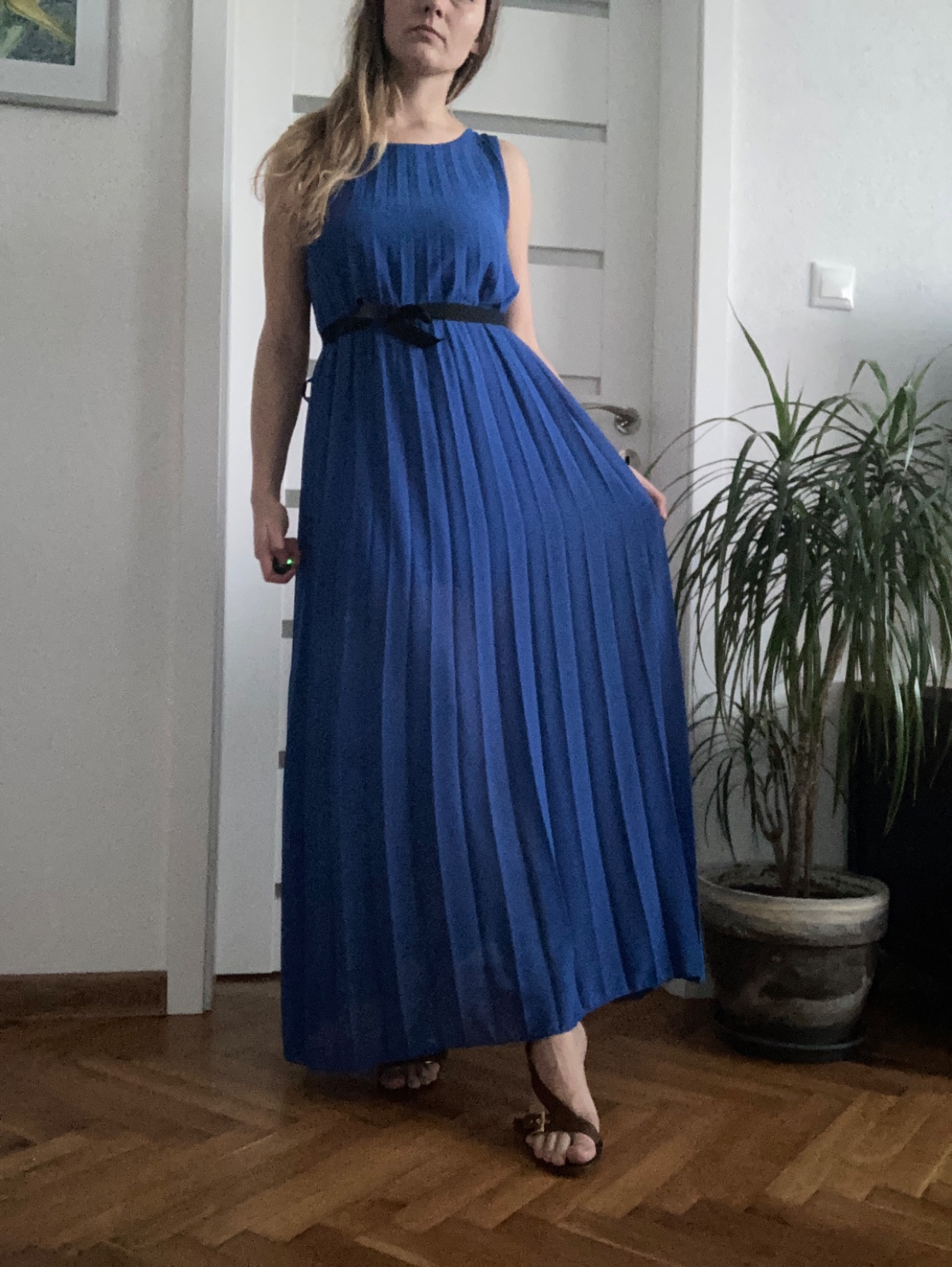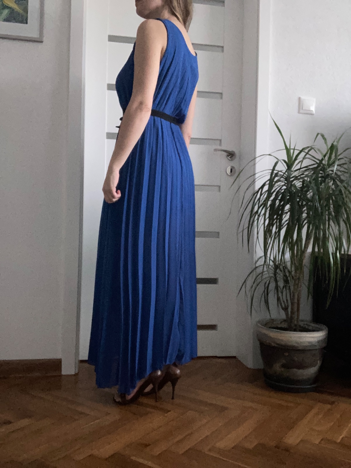 Šaty majú krásnu kráľovskomodrú farbu. Vďaka opasku sa dajú prispôsobiť, čiže sú vhodne aj pre veľkosť XS až M.