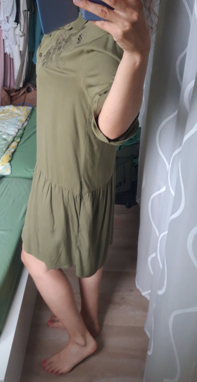 Krásne letné šaty na gombíky v páse zúžené, sukňa mierne rozšírená. Pri výške 163 cm sú tesne po kolená. PC. 39€.
