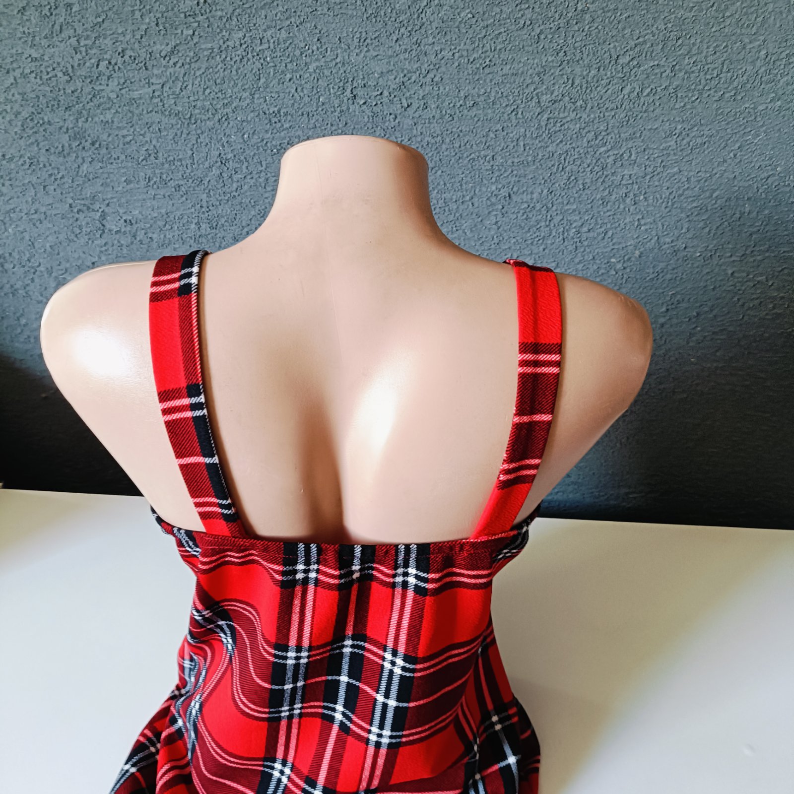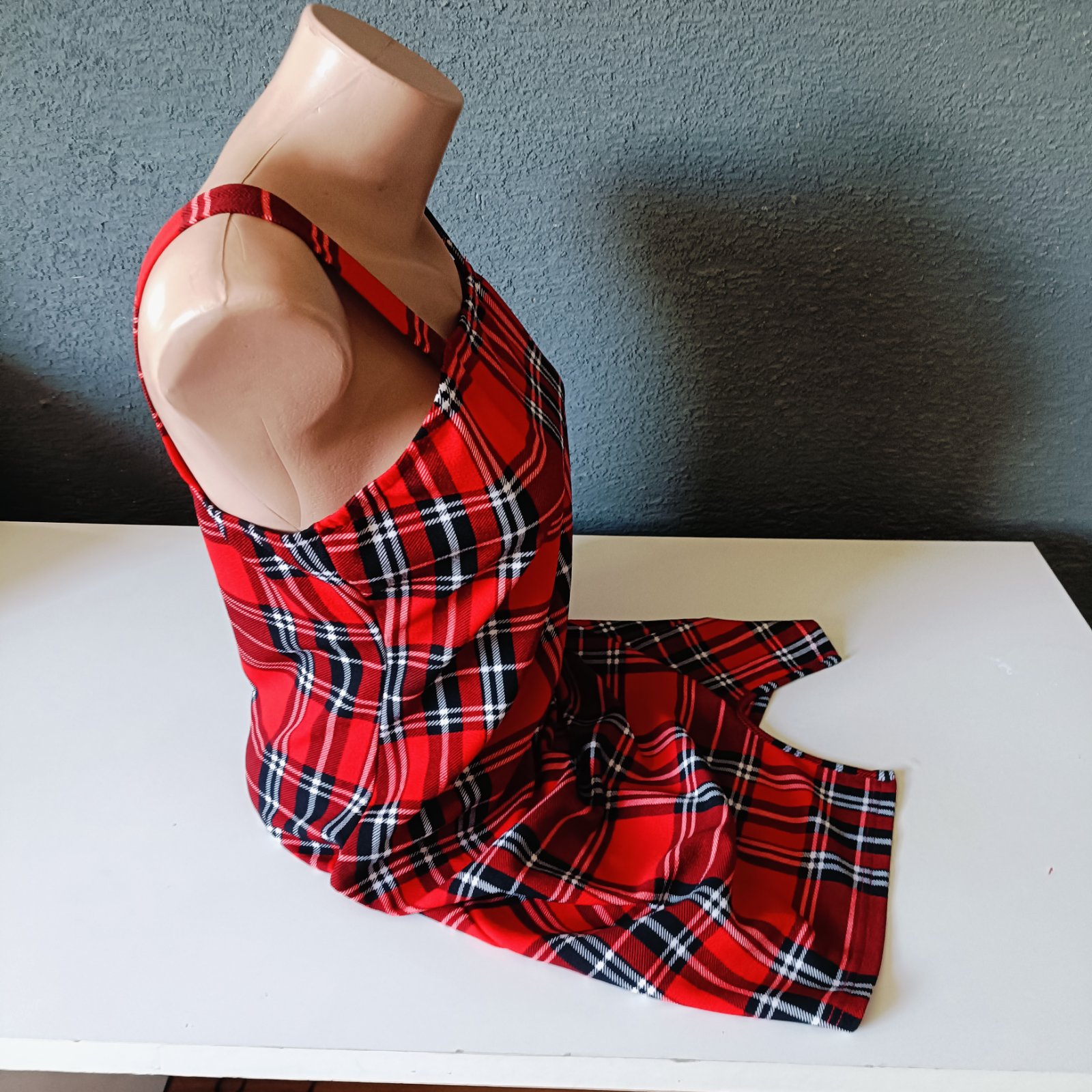 Červené kockovane saty