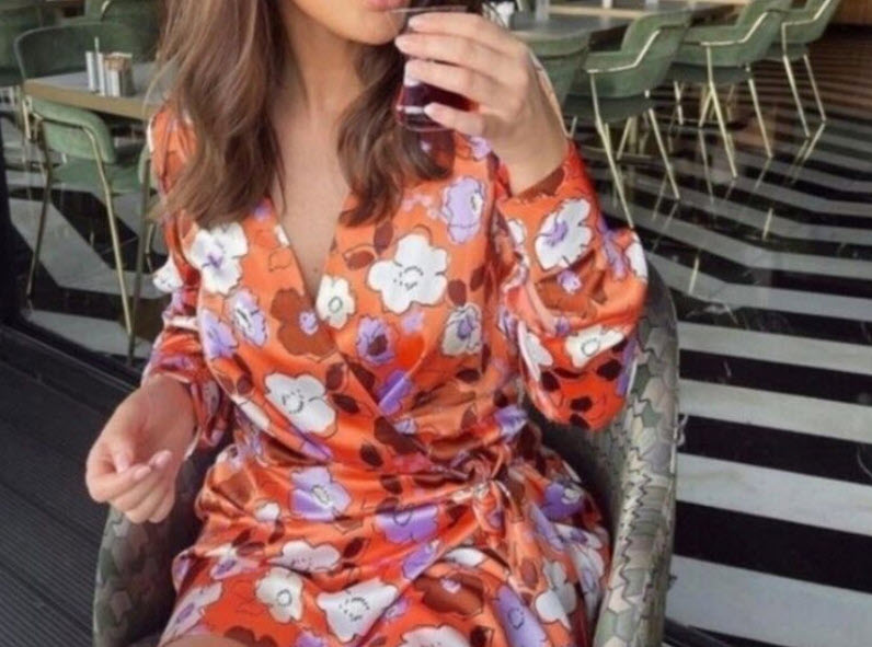 Predám tieto krásne šaty značky ZARA vo veľkosti S. Pôvodne stáli 45,95 EUR. Majú krásnu oranžovú farbu s kvetinovým vzorom, véčkový výstrih. Zaväzujú sa na boku, zakryjú prípadné nedostatky. Veľmi pekný elegantný kúsok. Počas fotenia som si všimla očko, nevidieť pri nosené, iba pri detailnom skúmaní, nafotila som zblízka na poslednej fotke.