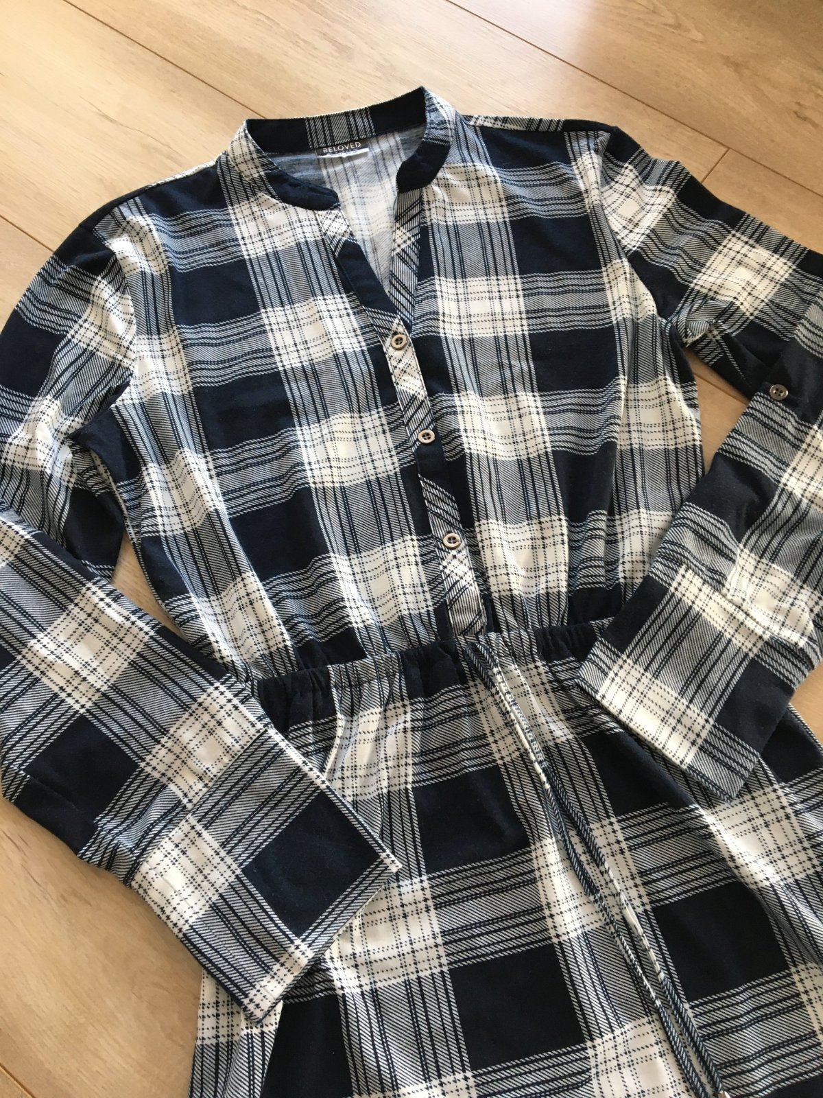 Predám tieto košeľové šaty. Šaty majú v prednej časti gombíky a v oblasti pása sú predelené gumou a dajú sa ešte stiahnuť šnúrkou. Rukáv sa dá skrátiť na trojštvrtový. Veľkosť 36/S.