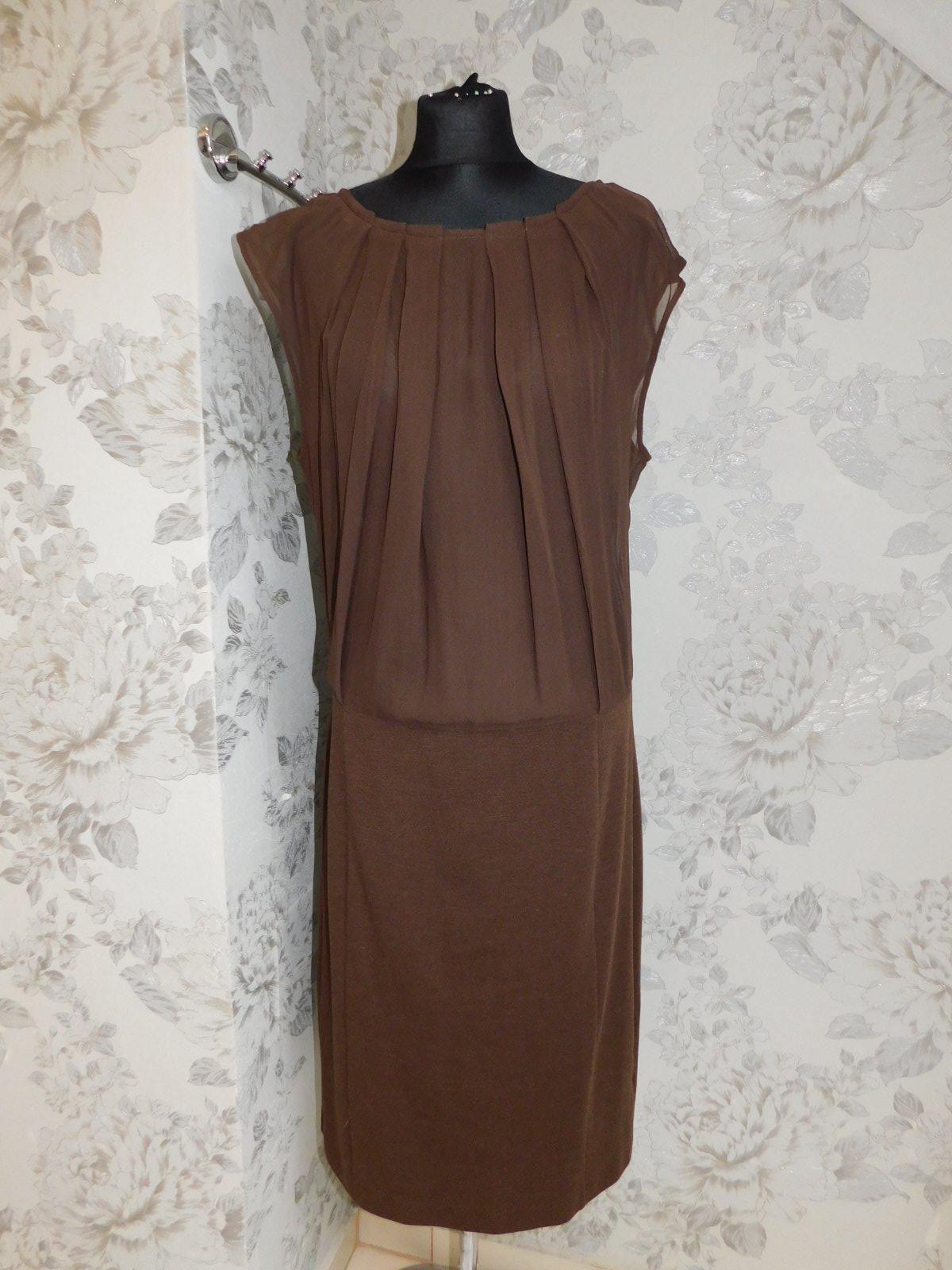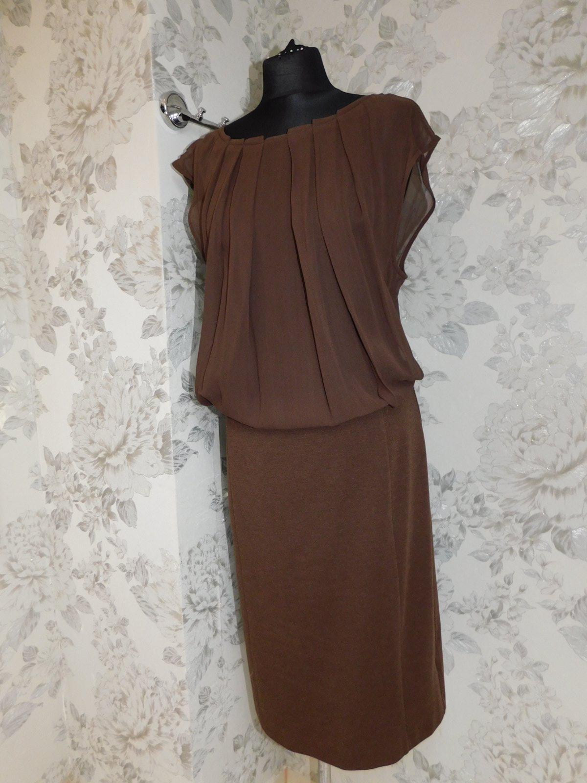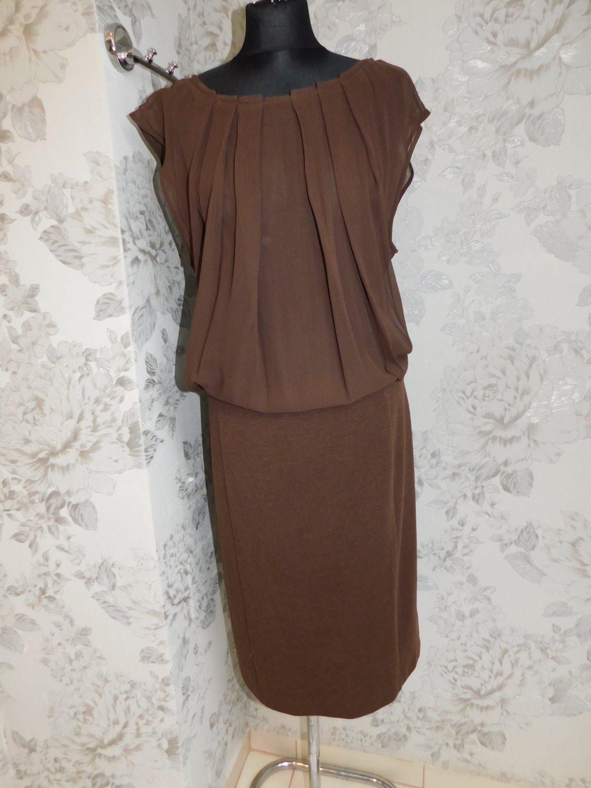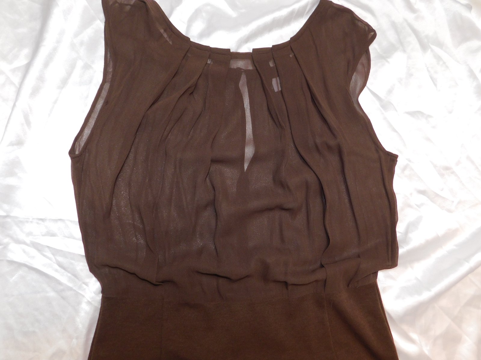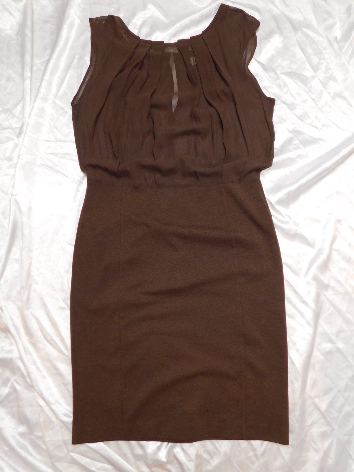 ALBA MODA Luxusne trendy elegantne šaty hnedej farby,horna čast z mierne priesvitneho hodvabu,sukna zo stredne hrubeho upletu.super stav,ako nove.100%hodvab, 70%polyester,25%viskoza,5%elastan.pc 149€. m