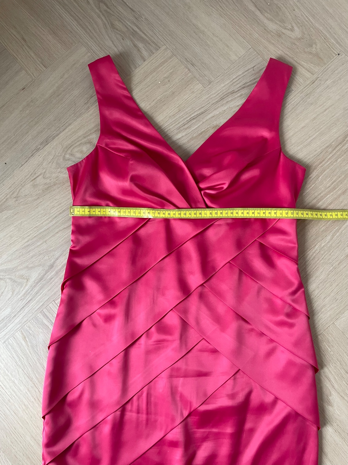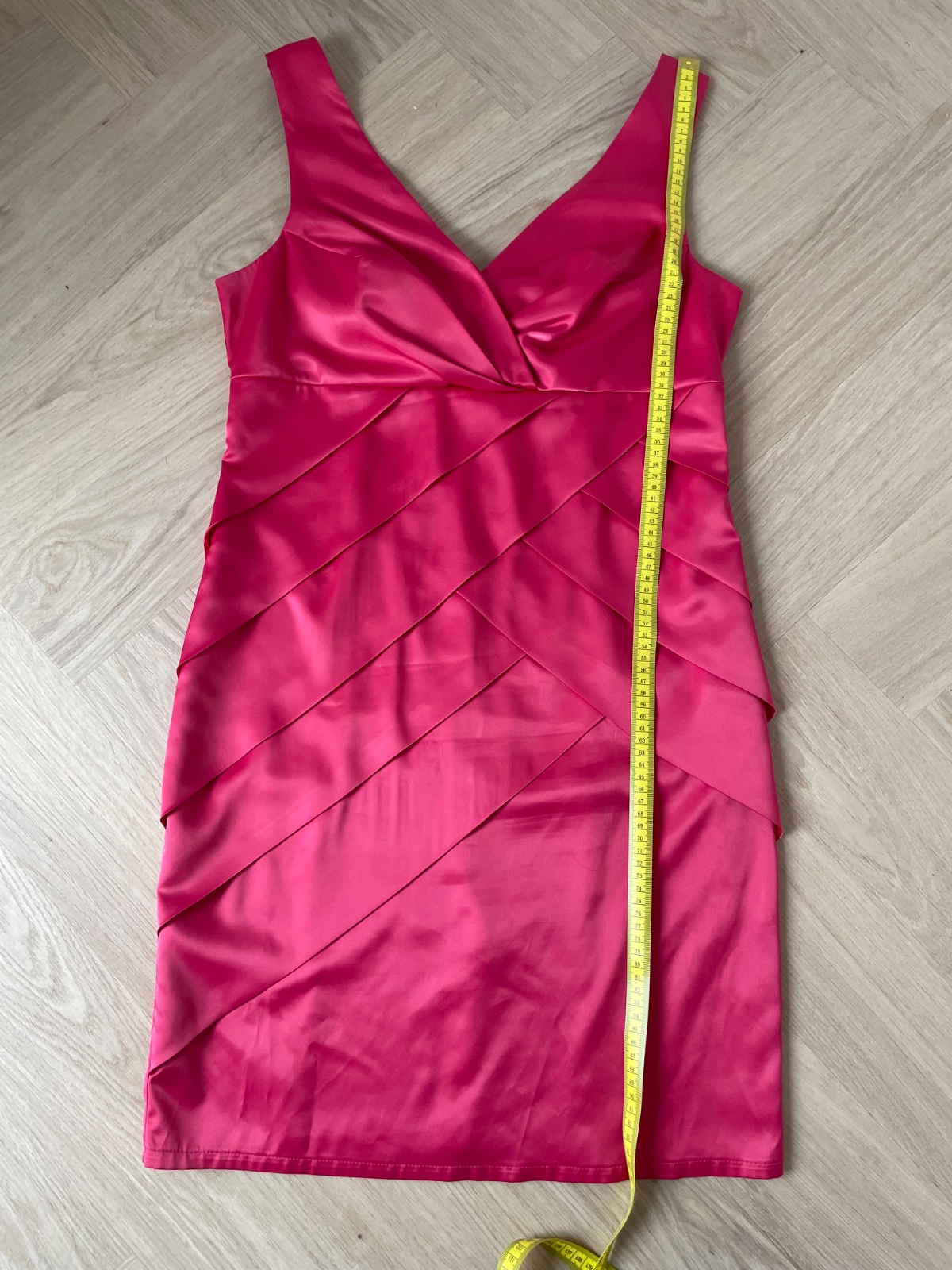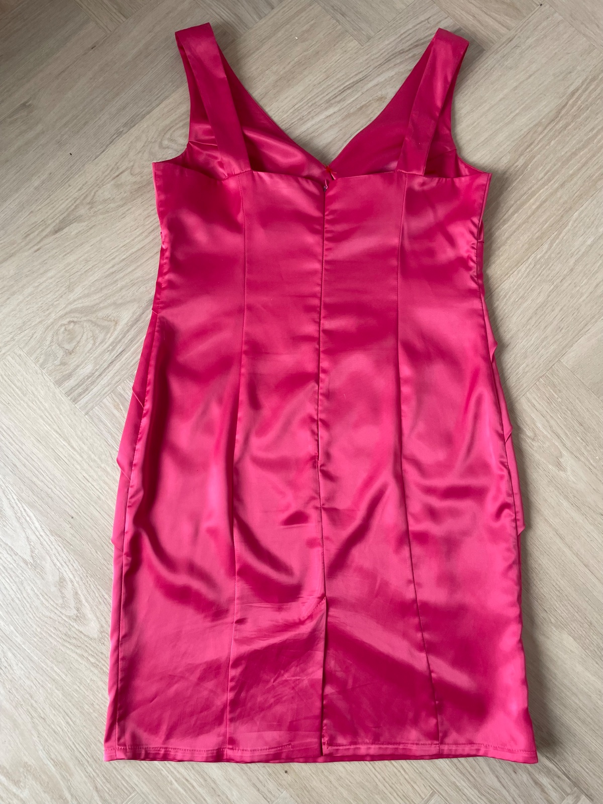 Super saténové šaty v top stave. Krásna cyklaménová farba. Vzadu dlhé, vpredu krátke. Vhodné na svadbu, ples, stužkovú. 2x oblečené
