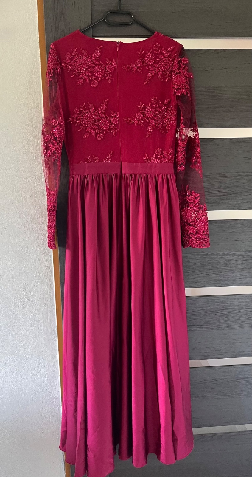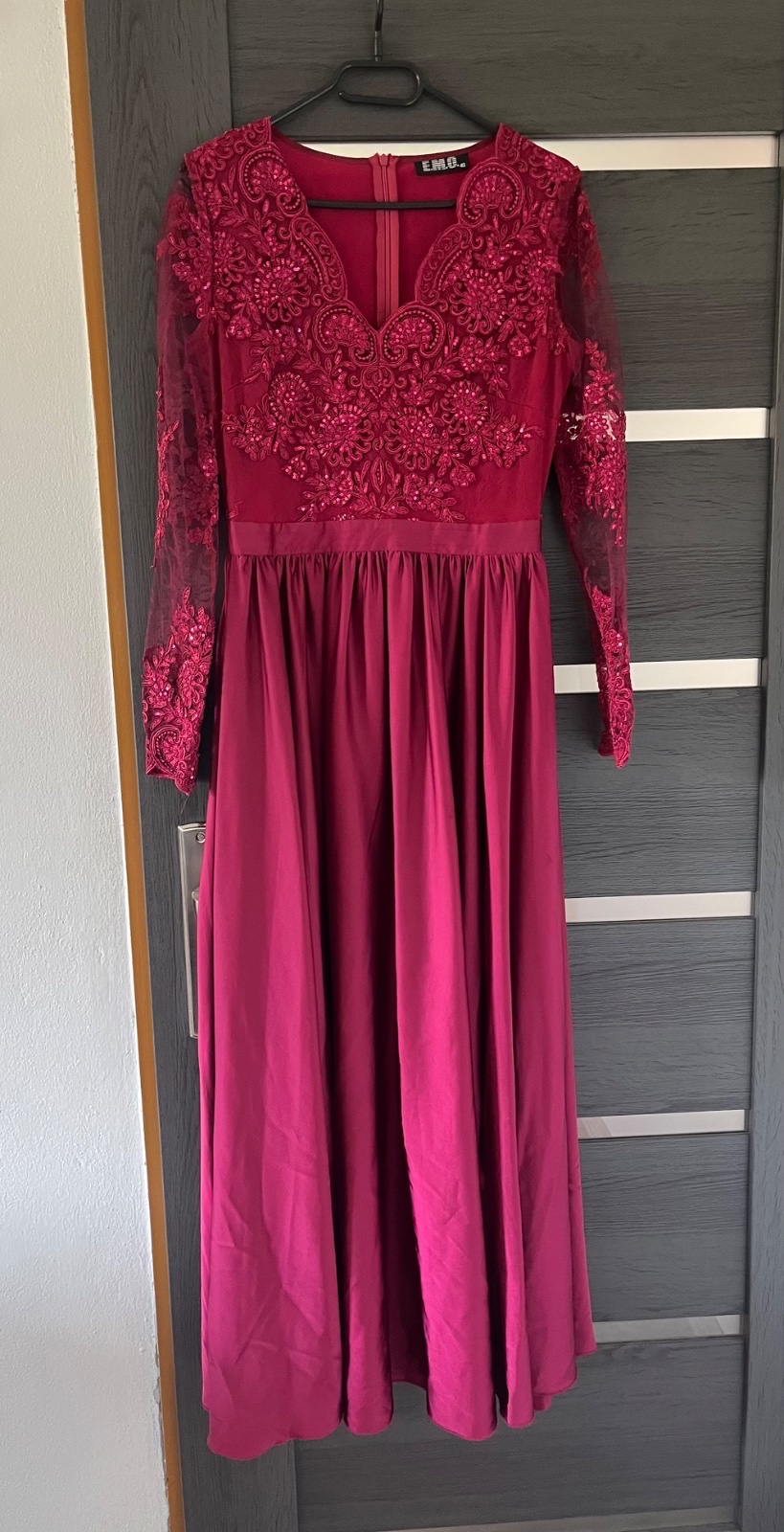 Krásné spoločenské šaty, dokonalej bordovej farby. Veľkosť šiat uvedená 44,dokonale sadnú ako XL.