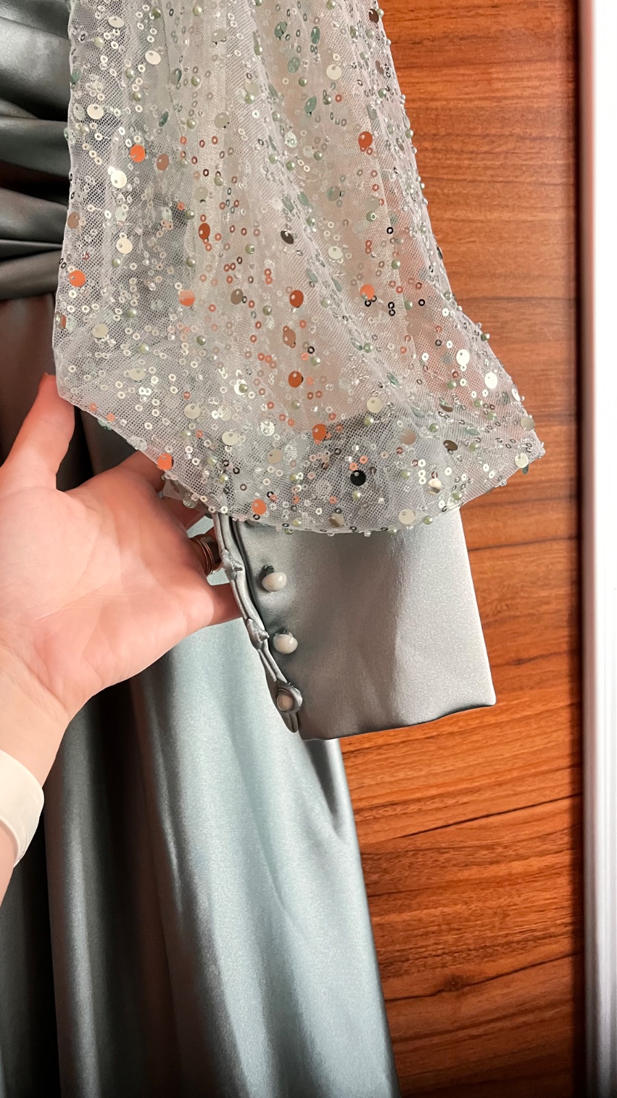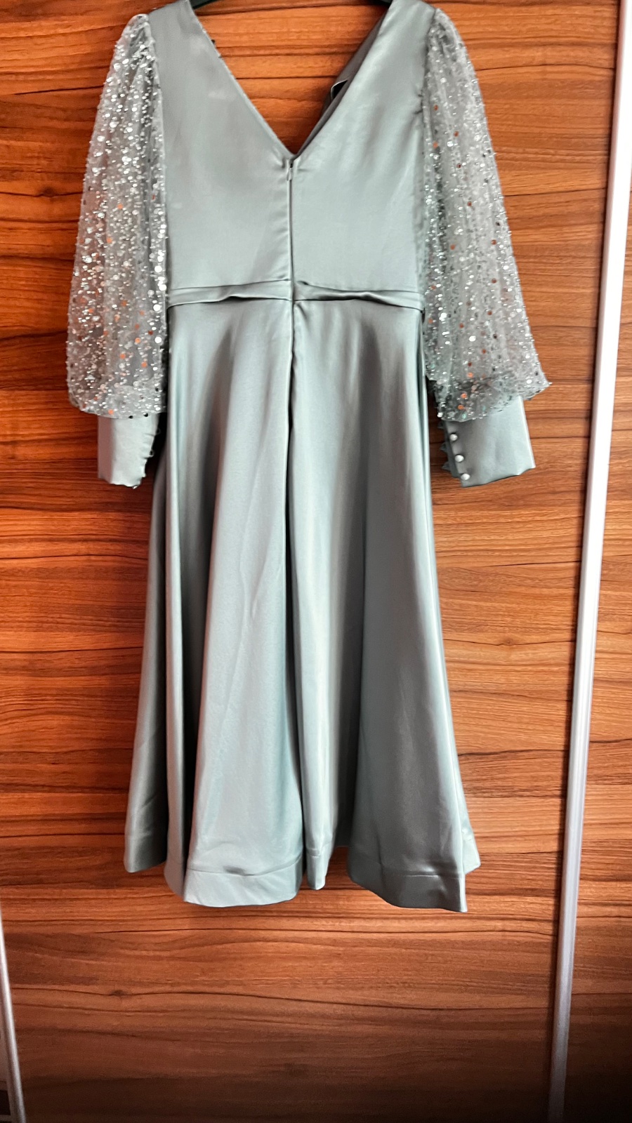 Nadherne saty kupovane v butiku v Chorvatsku na sestrinu svadbu, ktora sa nakoniec nekonala… len odakusane, krasne, kvalitne midi saty. Moznost odskusania v Spisskej Starej Vsi. Povodna cena vysoka