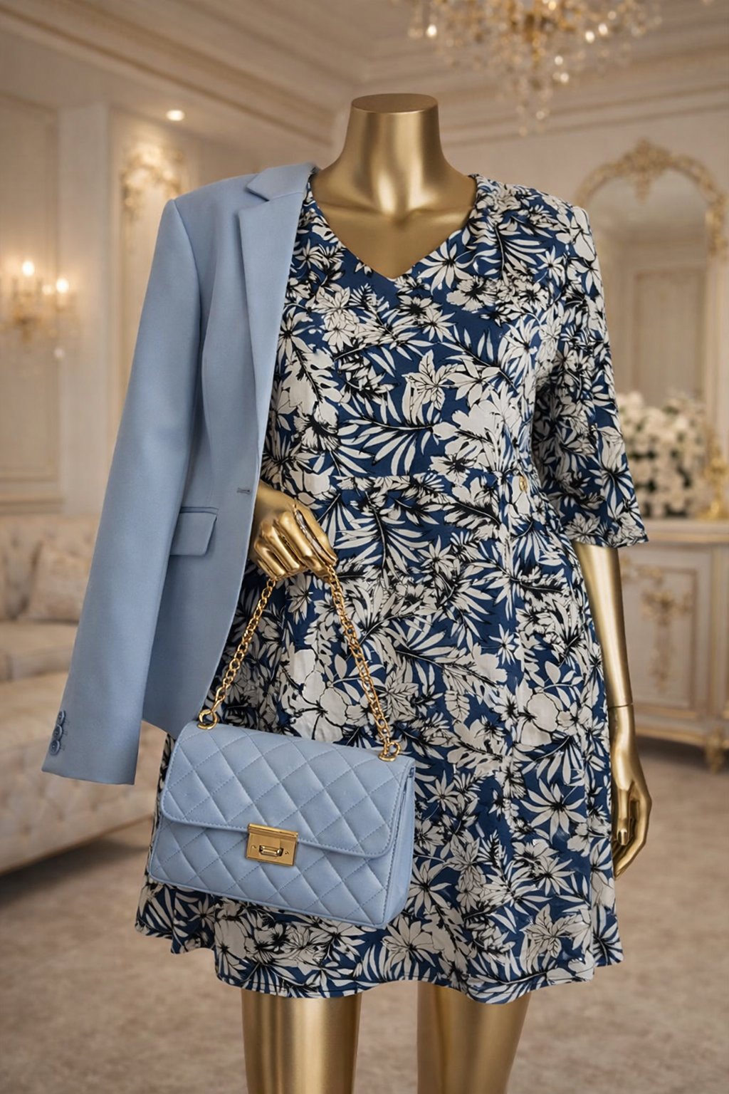 Elegantný kvetinový vzor v modro-bielej kombinácii pôsobí luxusne, sviežo a veľmi žensky.