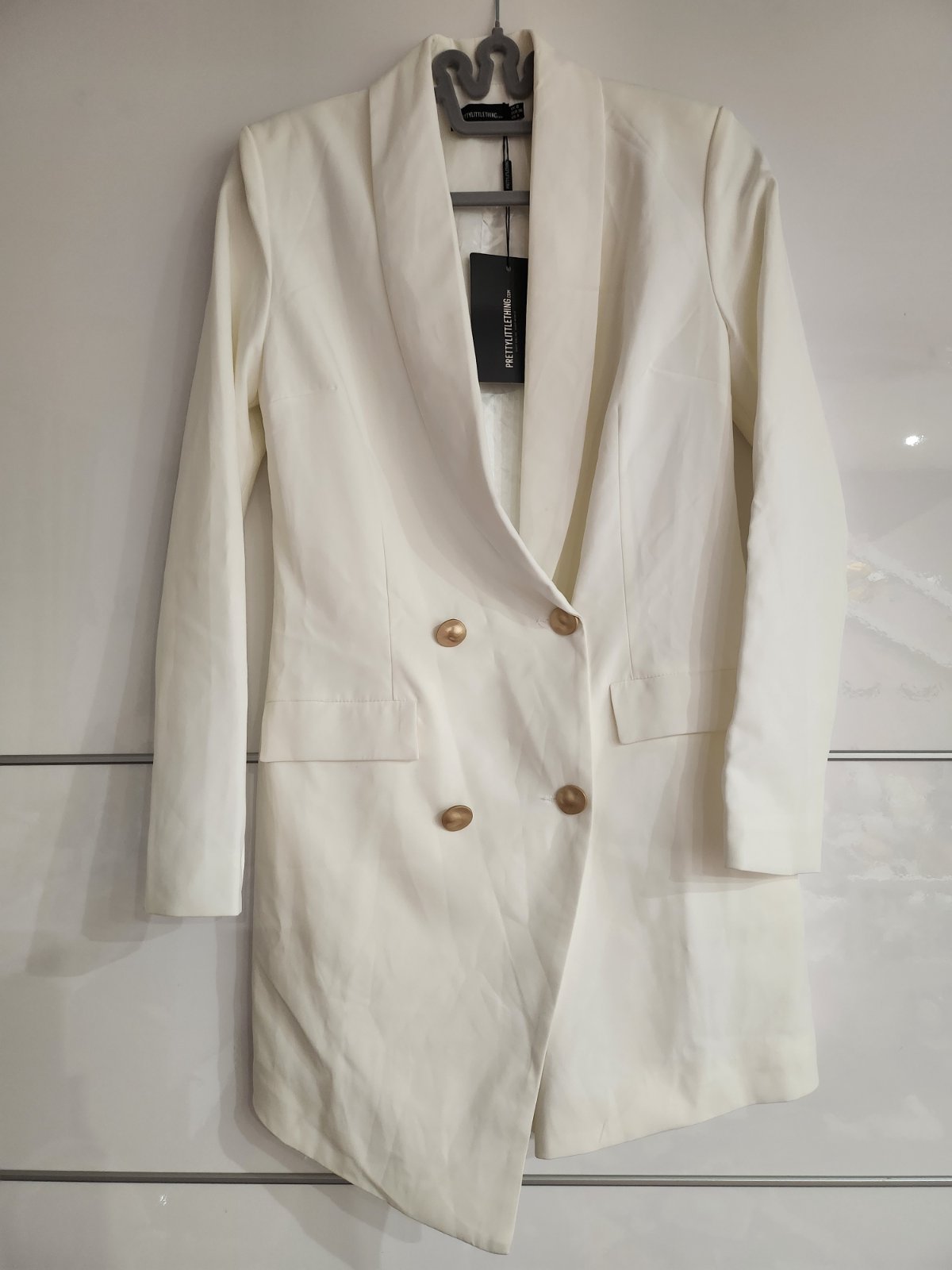 Biela, dlzka od pleca 82/86, rukav od pleca 70,,, pod pazuchami zapnute 44