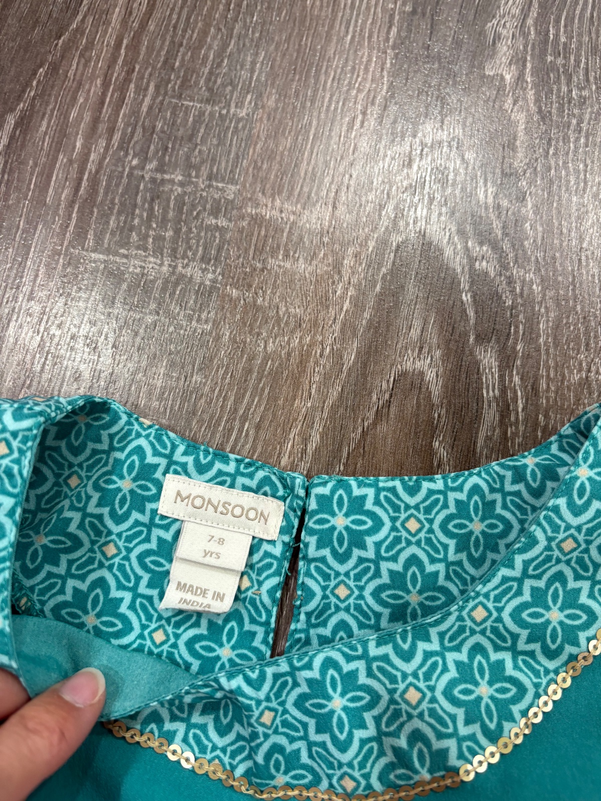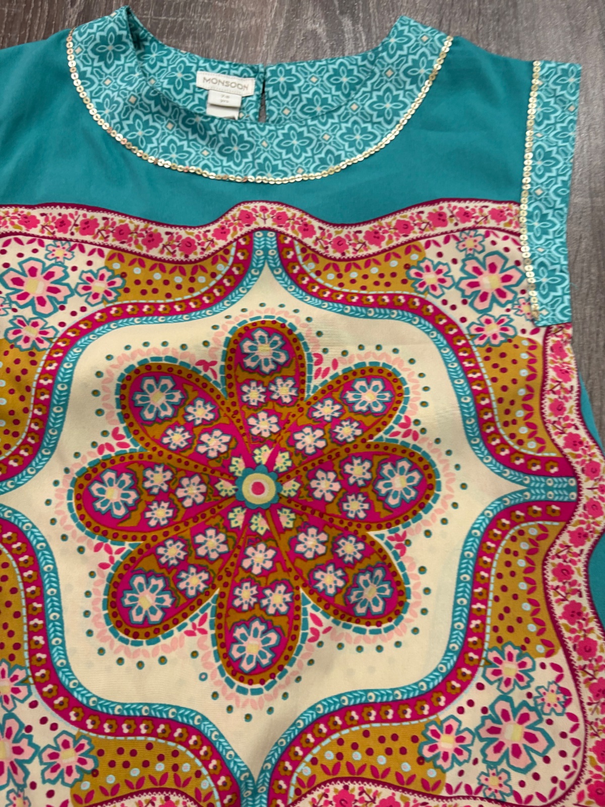 77.Monsoon krasne letné lahučke šaty , super farebne,velkost 7-8 rokov,dlzka prednej casti je 56cm,zadnej je 61cm a sirka v podpazusi je 35x2cm