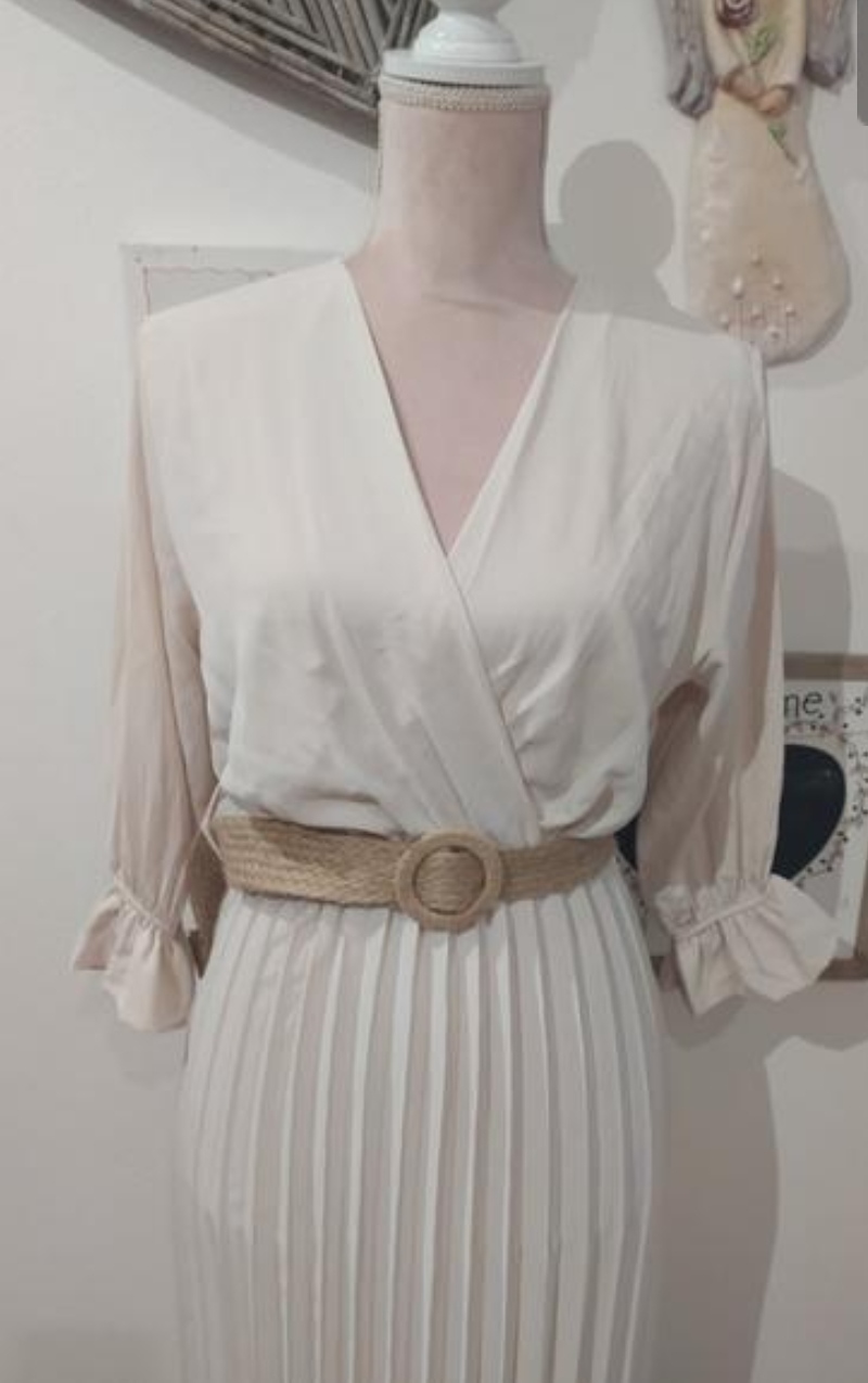 Elegantné šaty s plisovanou sukňou, vhodné aj na príležitosť.Vel uvedená Uni vhodné pre veľ S-M,Opasok nebol súčasťou.