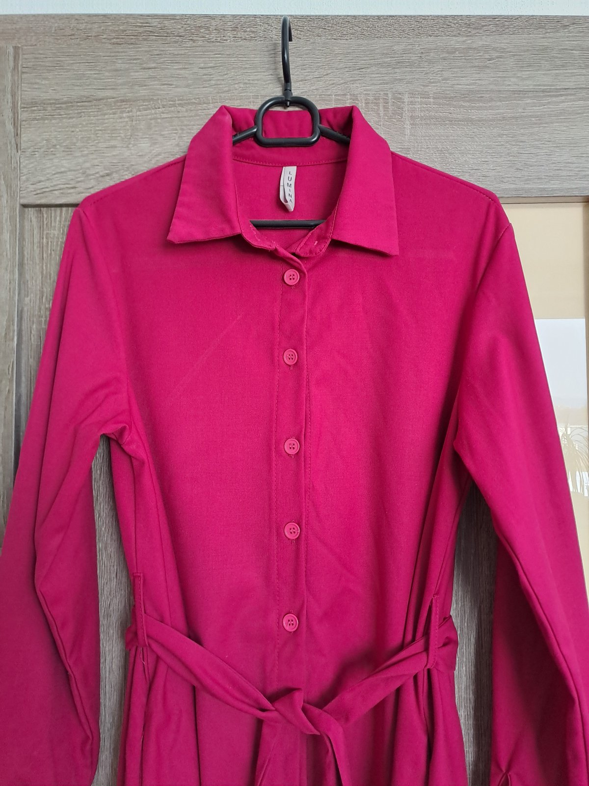 Cyklámenovoružové košeľové šaty, sedia na veľkosť L alebo 40. Nemajú žiadne poškodenia.