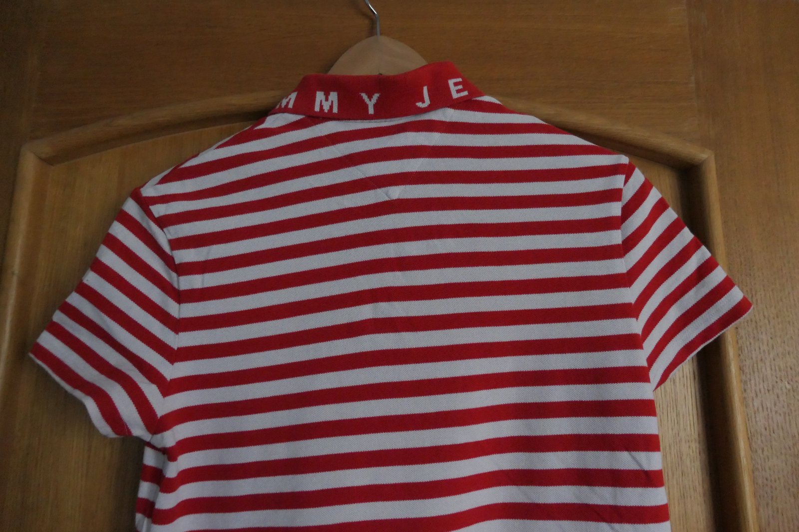 bavlnene stylove, pohodlne, prijemne damske saty cerveno biela kombinacia, pruzok, na hrudi nasivane logo TH, malicko nosene, krasne