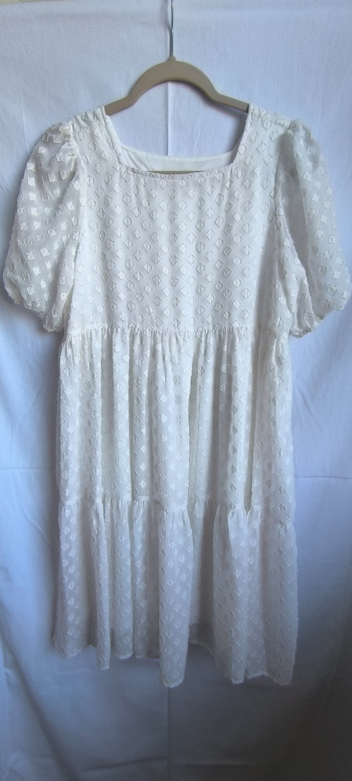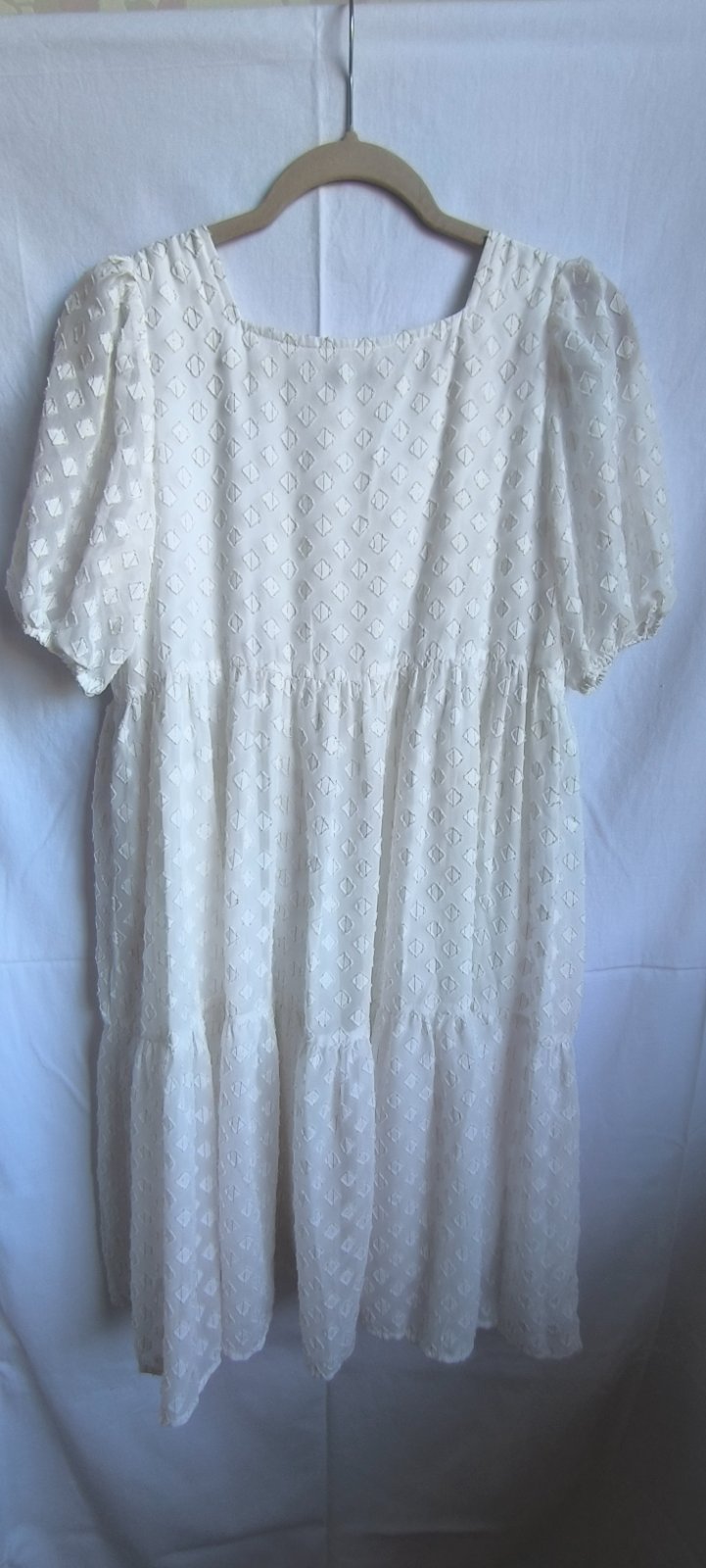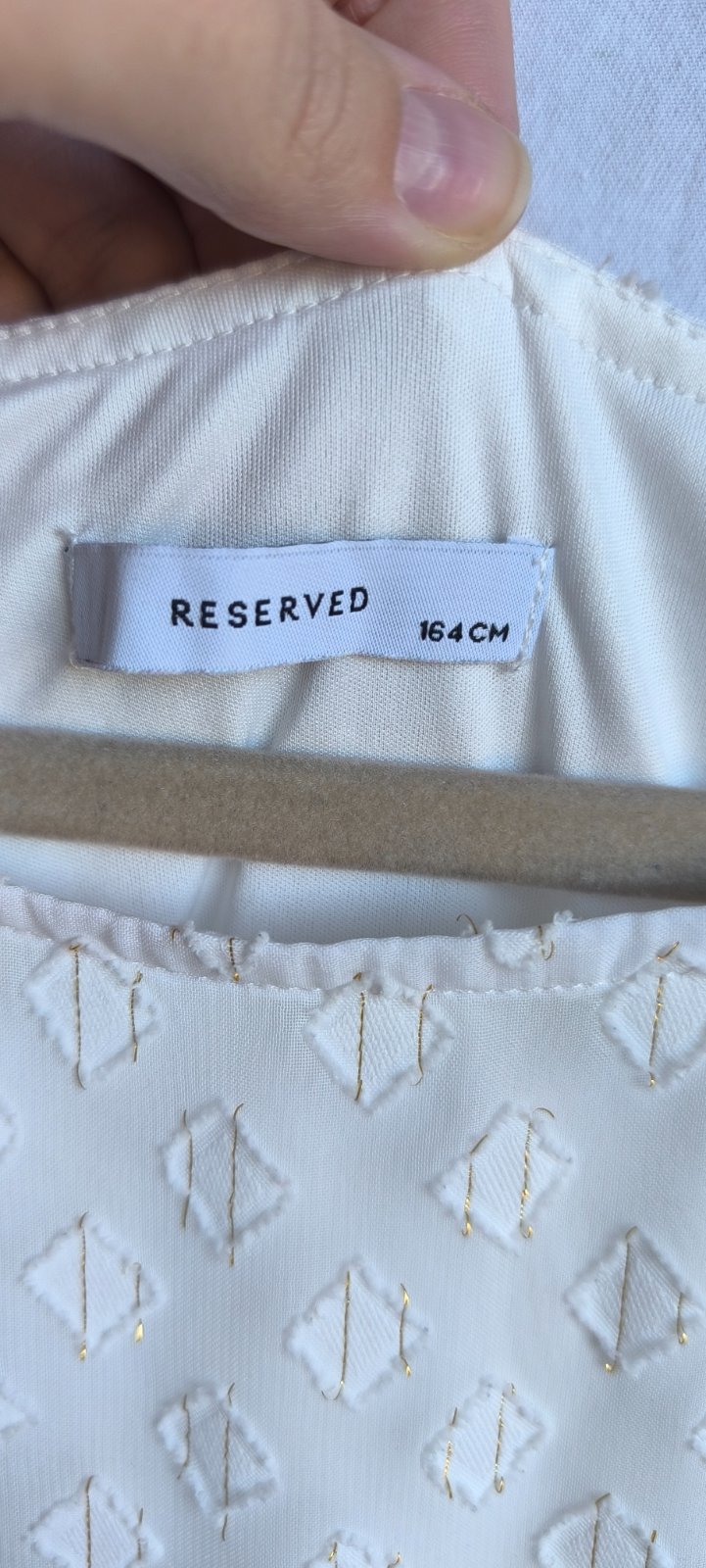 Šaty bez poškodenia, ľahké, vzdušné, s podšívkou, prešívané zlatou niťou, strih do A. Šírka cez prsia 2x46cm, dĺžka 95cm.