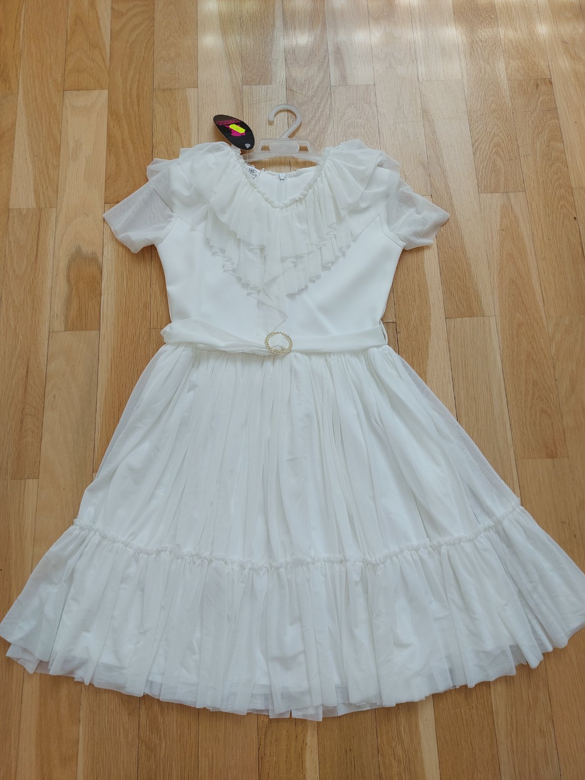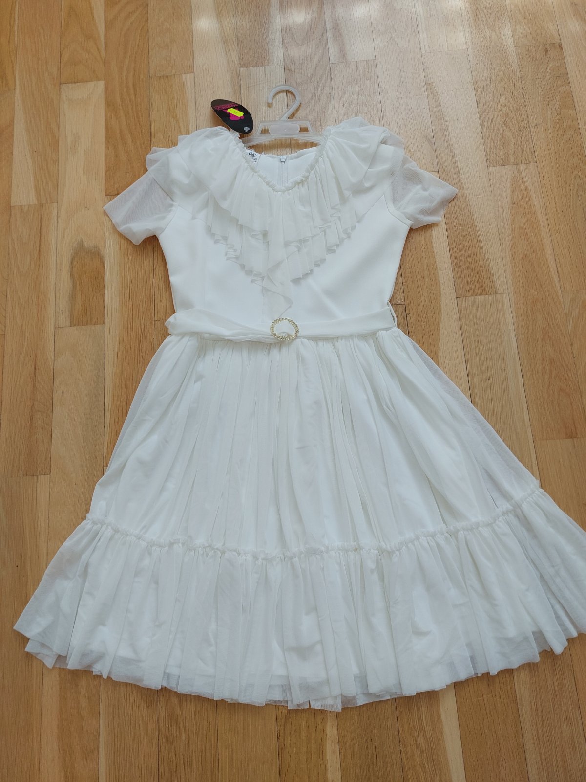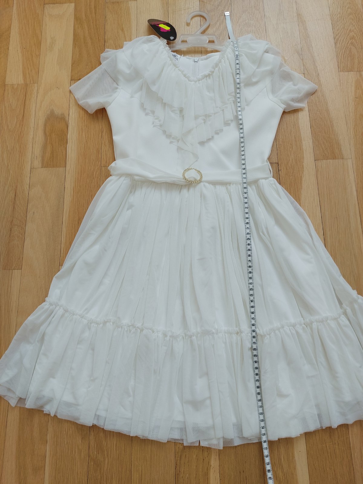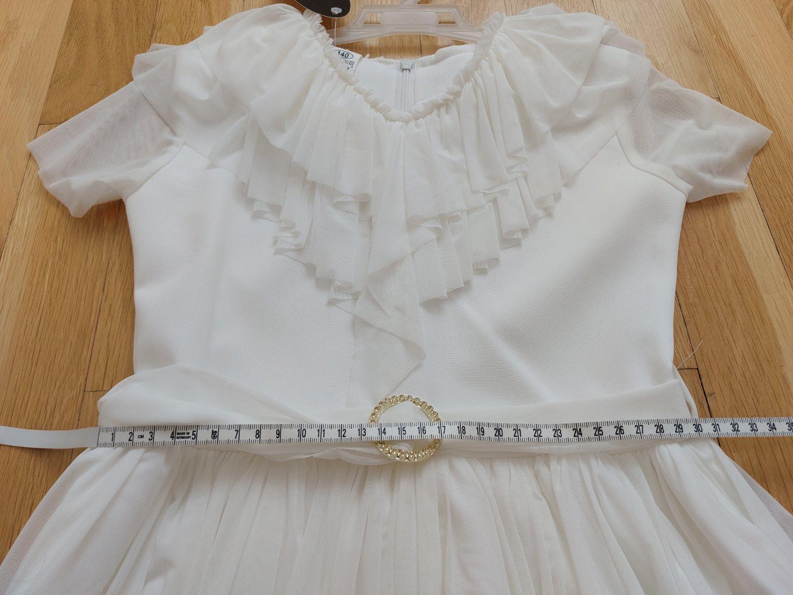 Predám šaty slávnostné veľ. uvedená na 12 rokov, ale zodpovedajú tak veľ.140. Rozmery: pas 33, pazuchy 36, celkova dlzka 75, dlzka sedielka 30. Nové! za 9e.