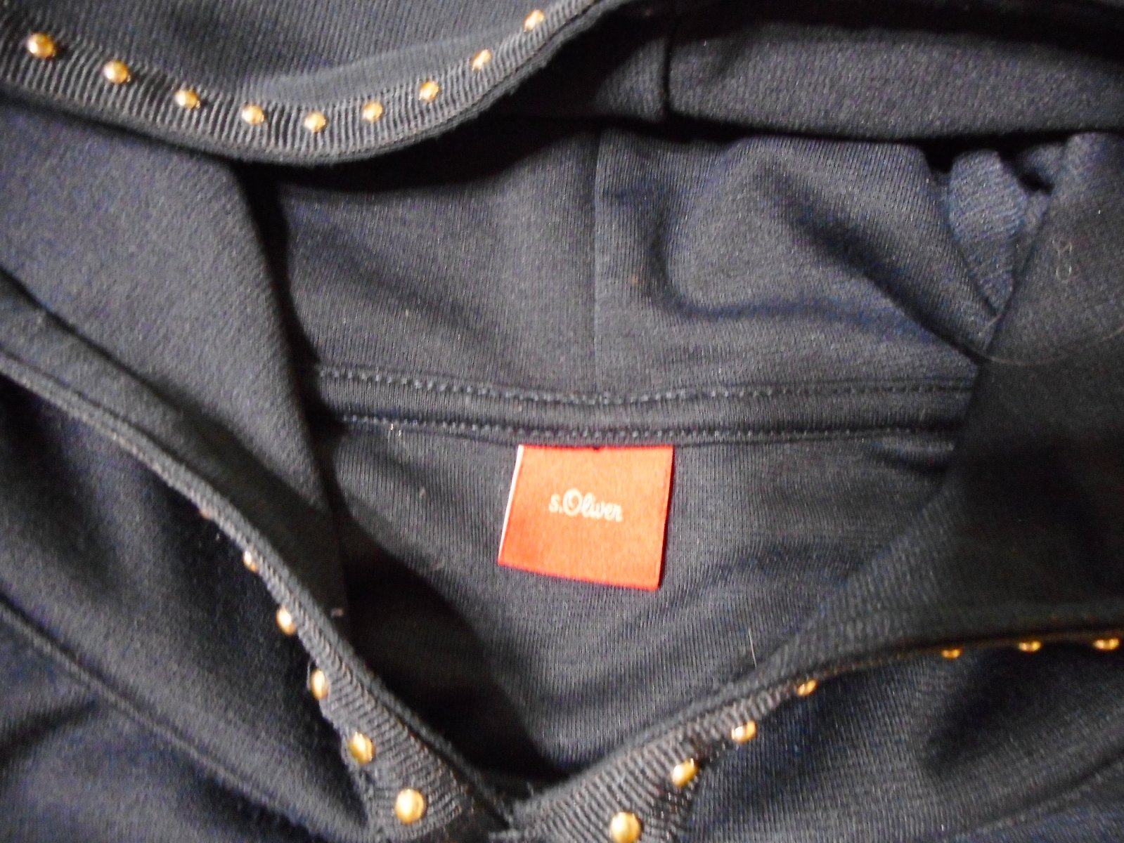 predám používané nepoškodené krásne nápadité dievčenské šaty z hrubšieho poloelastického materiálu na prechodné obdobie alebo zimu s kapucňou peknej tmavomodrej farby zn. s. Oliver veľkosť 146cm s dlhým rukávom, prestrihnutie šiat je v časti bokov dievčatka zo širšej gumičky, suknička je áčkového strihu, kapucňa šatočiek je nápadite olemovaná po obvode vybíjanými cvočkami, celková dĺžka šiat od krku je 74cm, šírka pod pazuchami je 40cm, vonkajšia dĺžka rukávu od šitia ramena je 54cm, vnútorná 42cm, neskôr je možné šatočky použiť ako tuniku k legínom