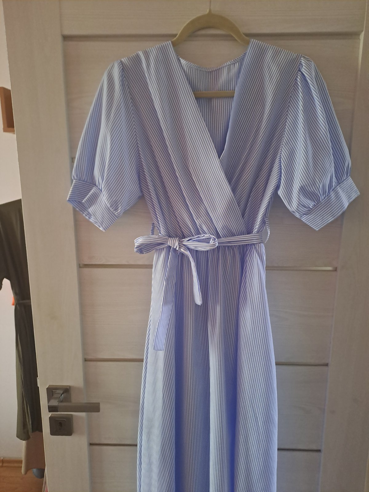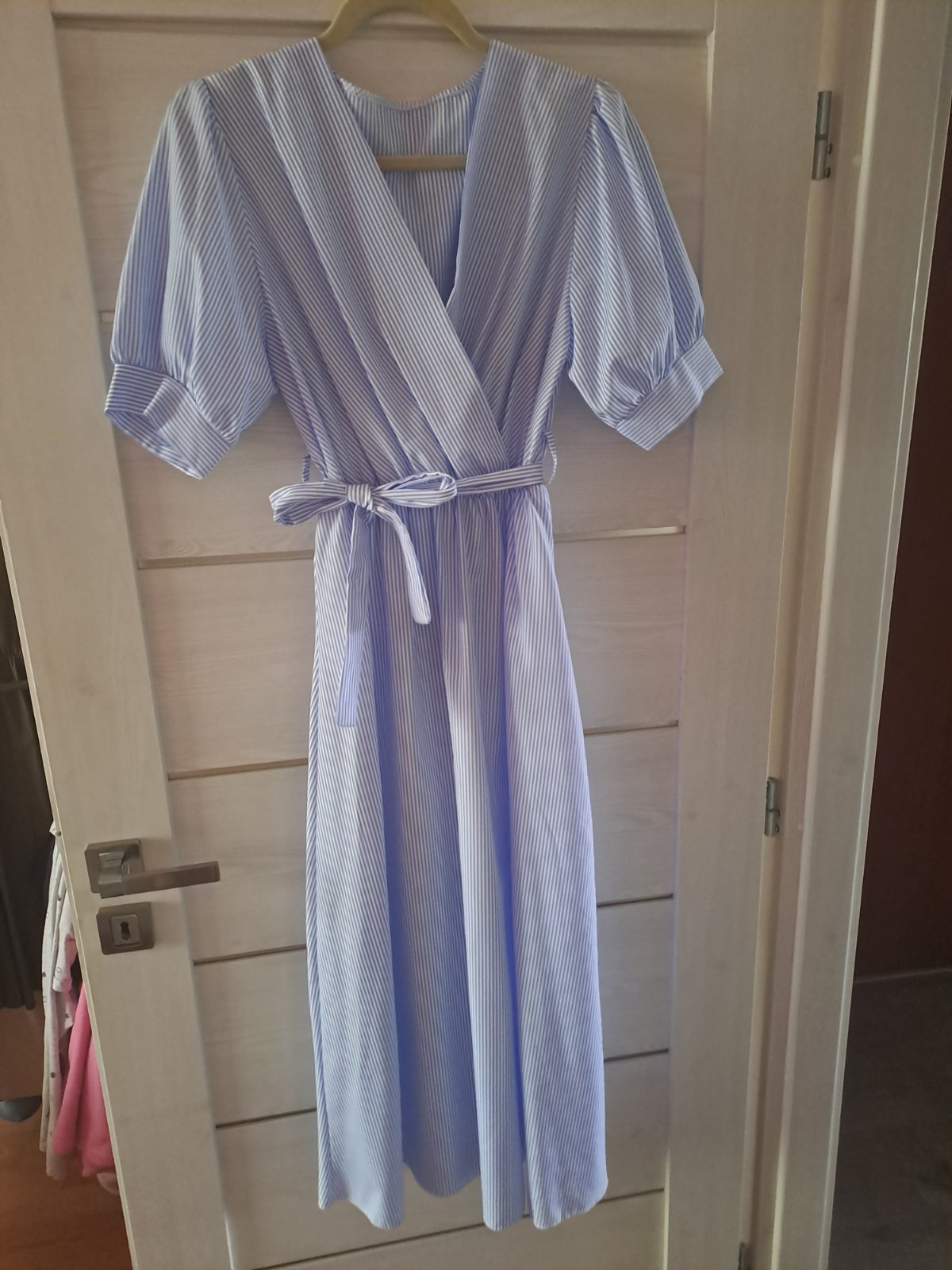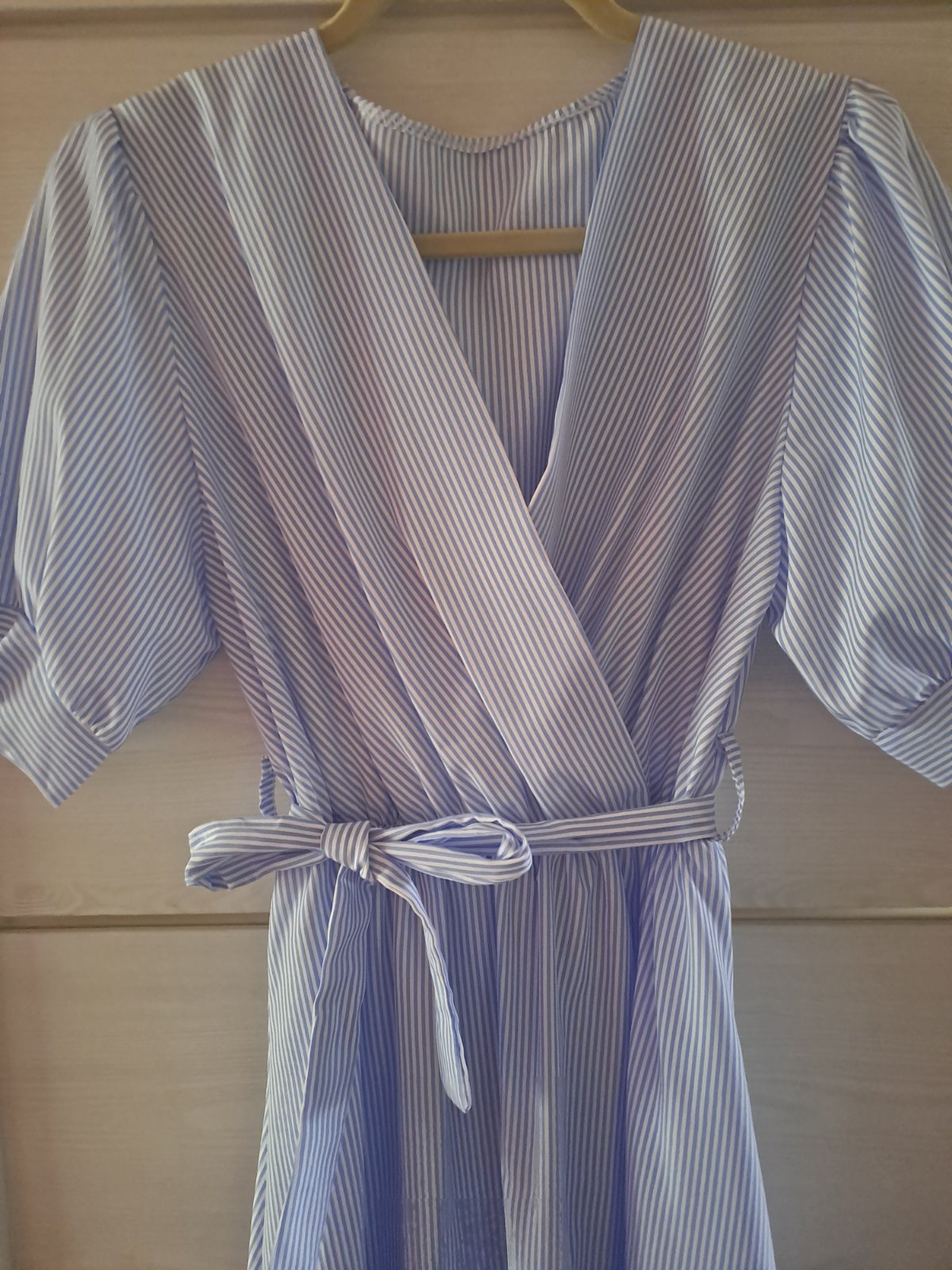 Predám vzdušné midi šaty z príjemného materiálu. Šaty majú V- výstrih, v páse gumičku a textilný opasok.