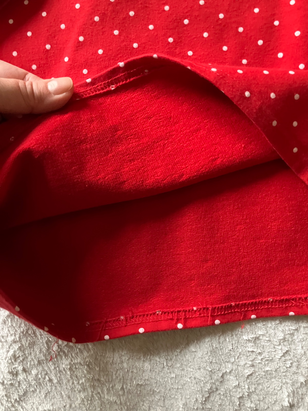 Elasticke teplakove saty s vreckami, nejaka handmade znacka, velkostne radim ako 134, rozmery na foto. Velmi prijemny material, farba syta cervena s bodkami. Nosene prilezitostne, bez poskodeni.