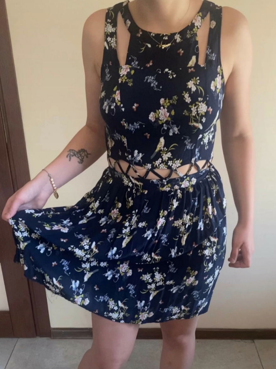Tmavomodré čipkované šaty nad kolená, podšité ďalšou látkou. Zapínanie zboku na zips a vzadu na gombík. Oblečené na jednej akcii. Predávam, lebo to nie je úplne môj štýl a len by mi viseli v skrini...