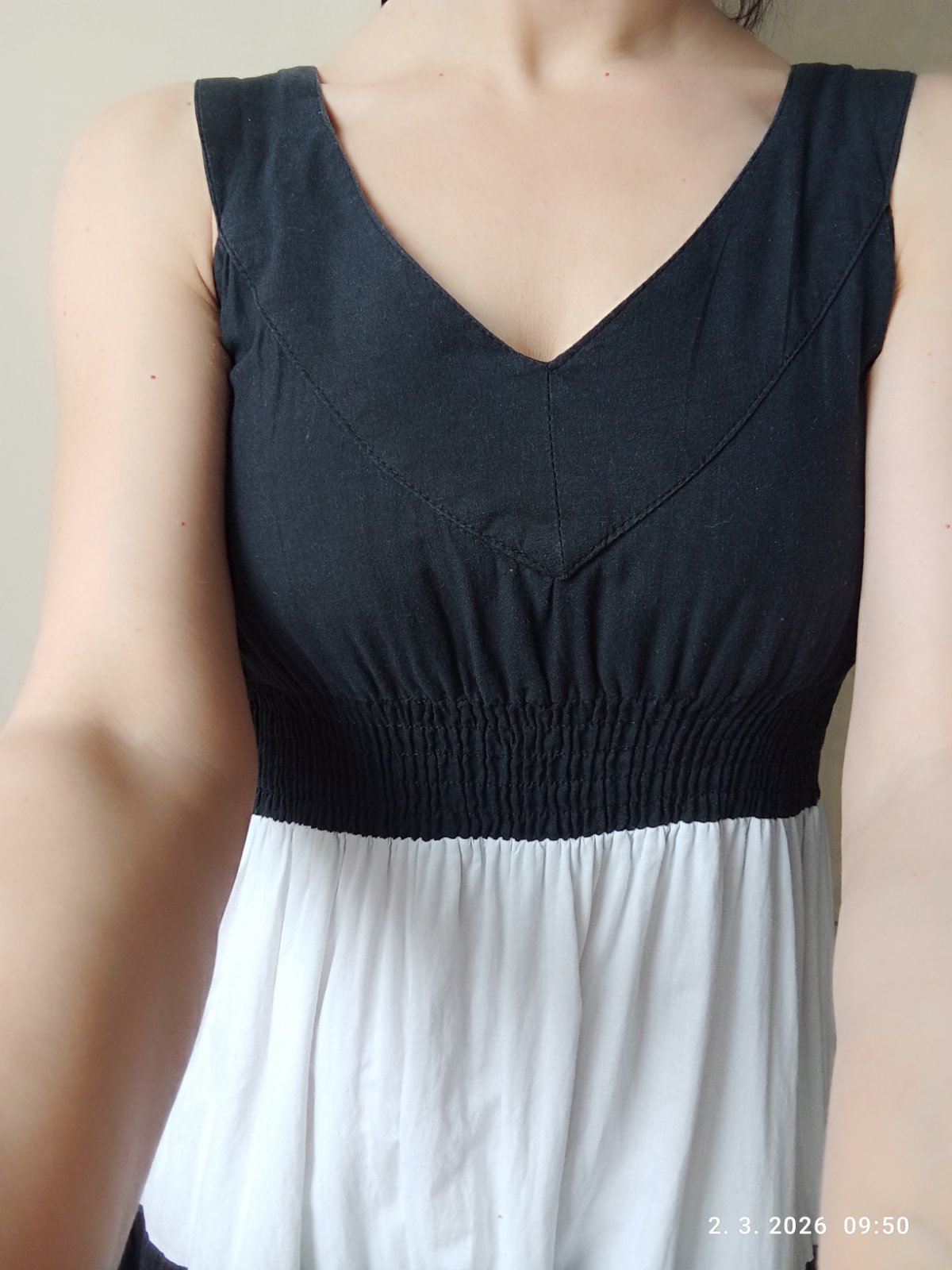 Skvelé šaty v peknom stave. Ideálne pre veľkosť S, aj keď gumičky ešte dosť povolia. Veľmi sa mi páčili no nebudem ich nosiť, lebo mi nevyhovuje čiernobiela kombinácia.