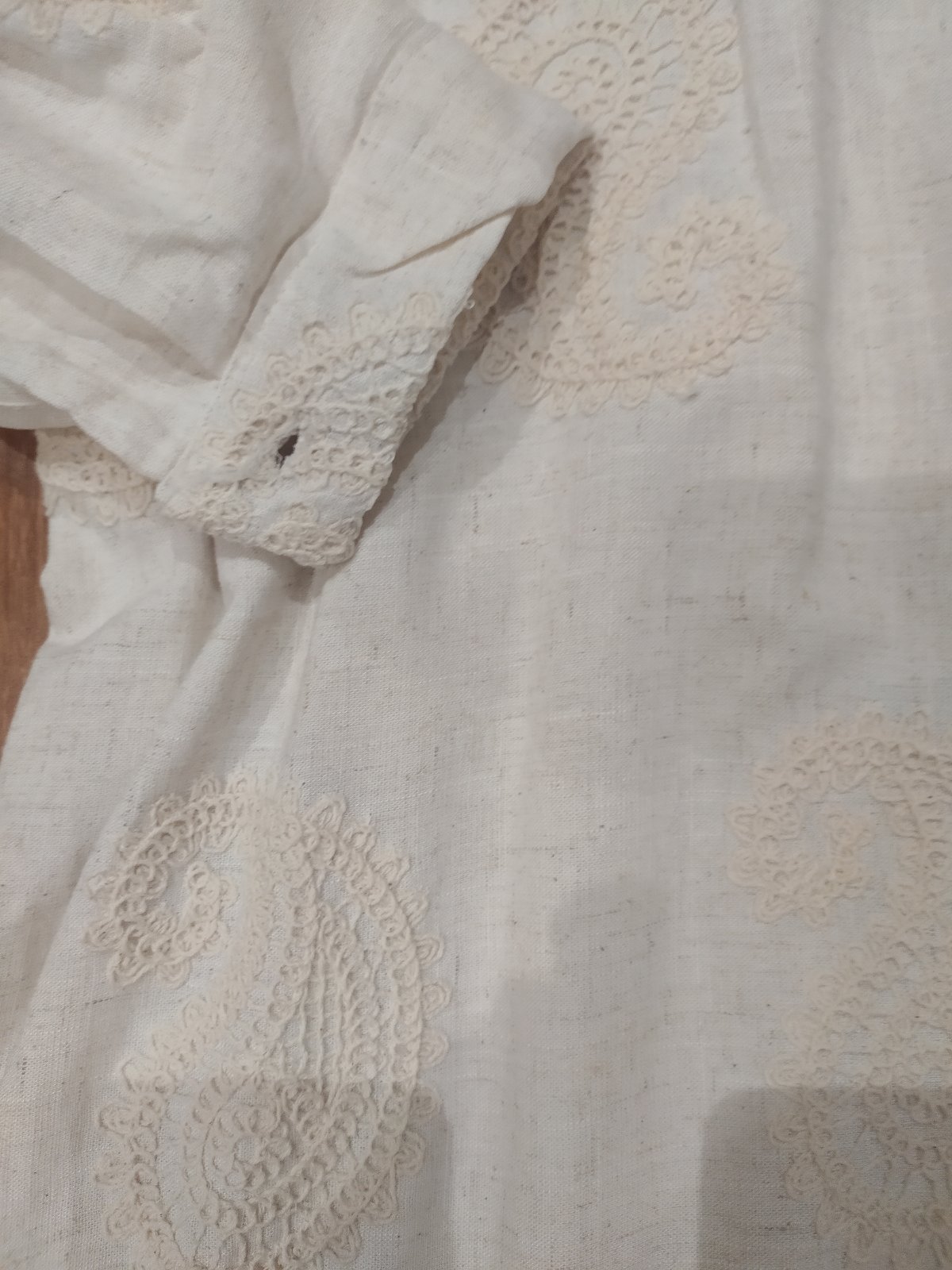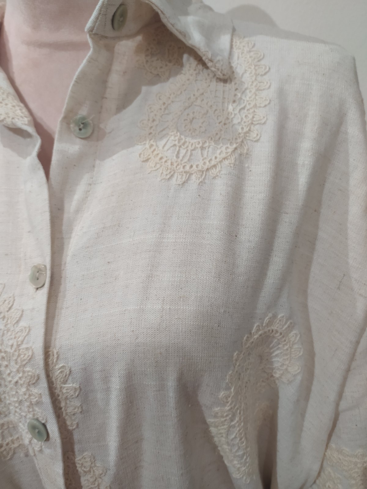 Krásne košeľové ľanové šaty,bez visačky ,neboli nosené.Saty majú dlhy rukáv,doplnené sú opaskom,po bokoch razporky.Vel Uni vhodné pre veľ M-Xl.