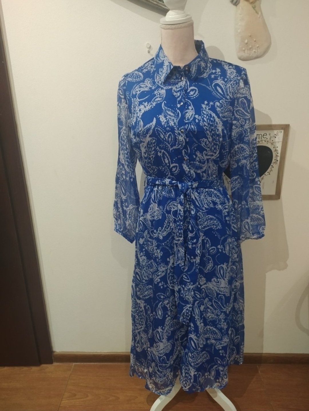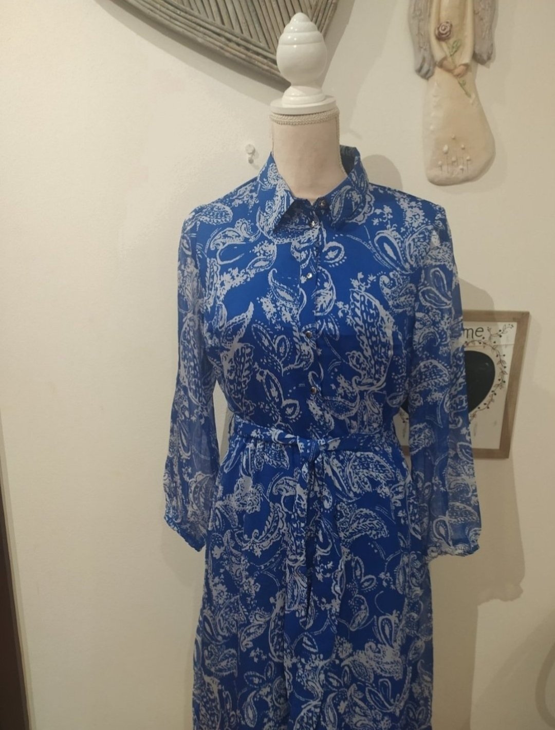 Krásne košeľové šaty,podšite,top stav, oblečené 1x.V páse guma,doplnené opaskom