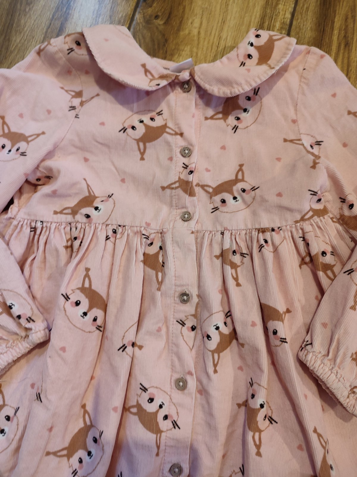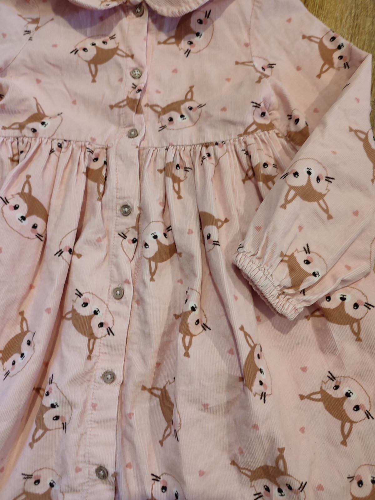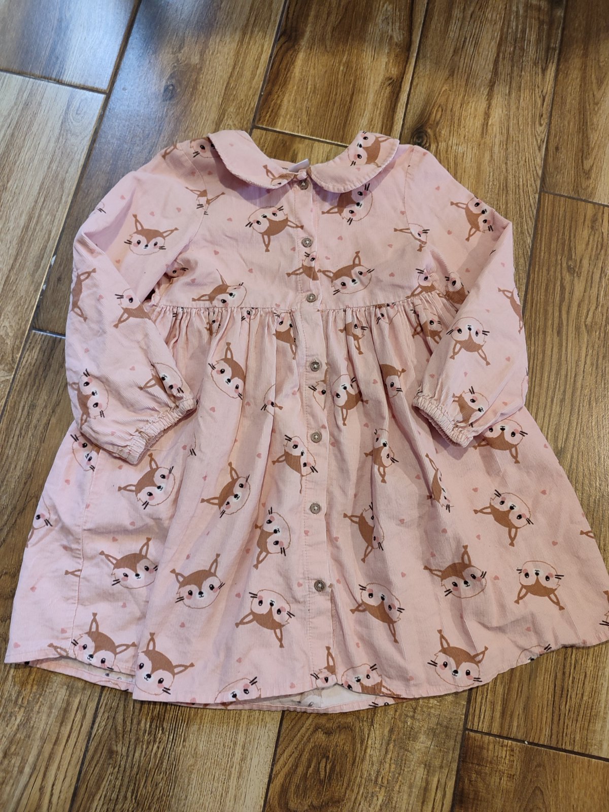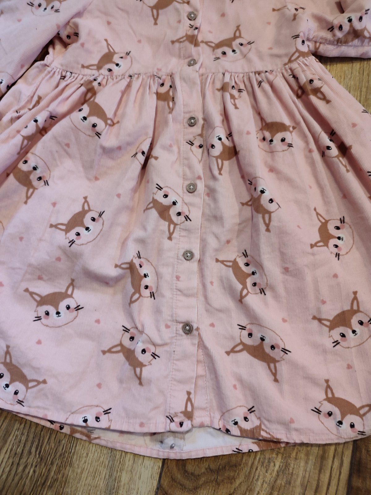 Krásne bledo ružové šaty s celopotlačou veveričiek. Sú celé na rozpoznanie na gombíky. V top stave.