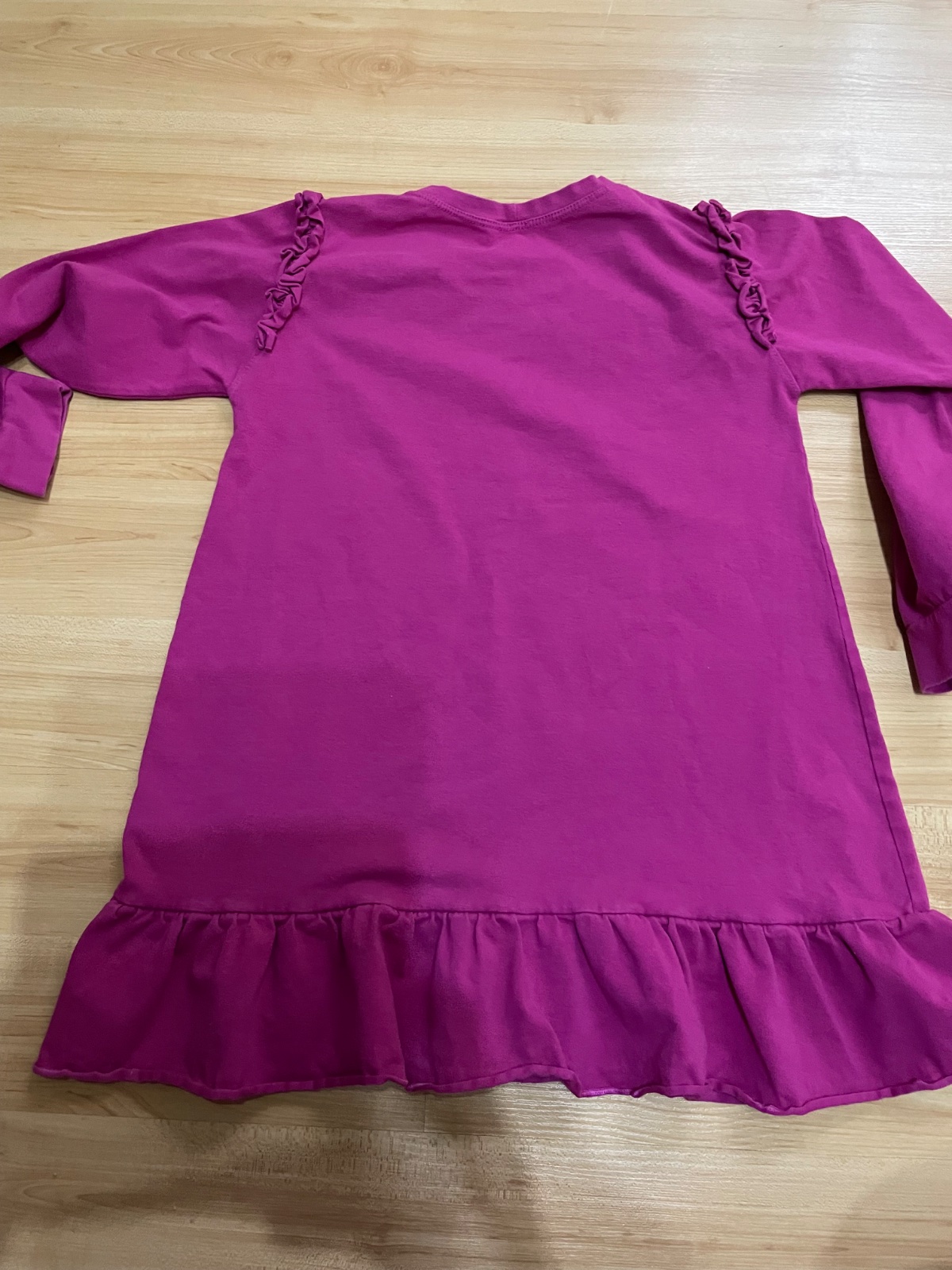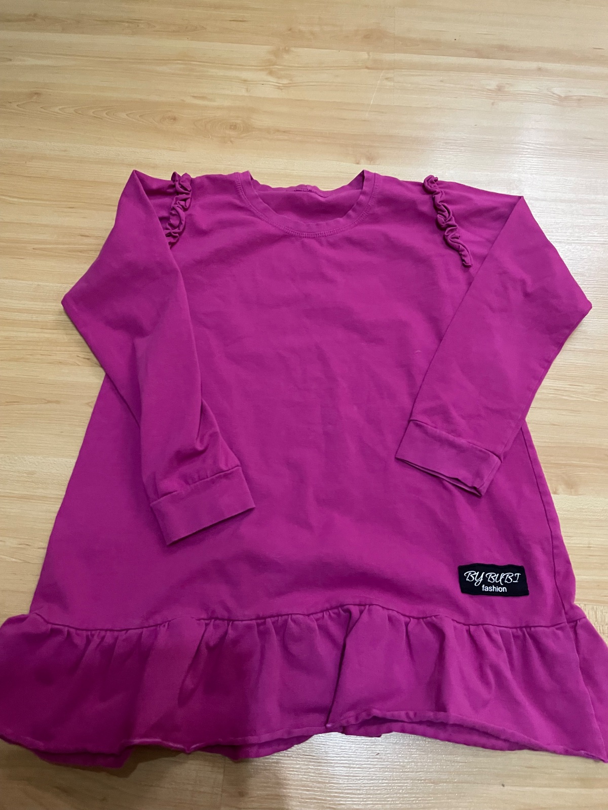 Veľmi pekný nosený stav, bez poskodeni, oblečené 1x na fotenie, príjemný mäkký materiál, mašĺa na boku sa da uviazat podla potreby,rukav od krku 80cm, šírka 38cm, dĺžka 75cm, dvojcislie 146/152