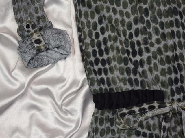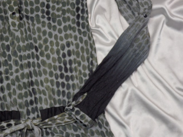 šírka v podpazuší 44x2 cm, pás 41x2 cm, boky 48x2 cm, dl. 105 cm, rukáv od goliera 81 cm