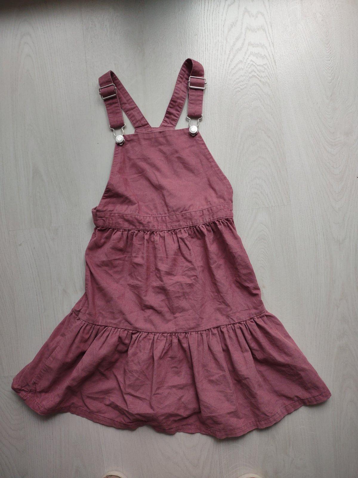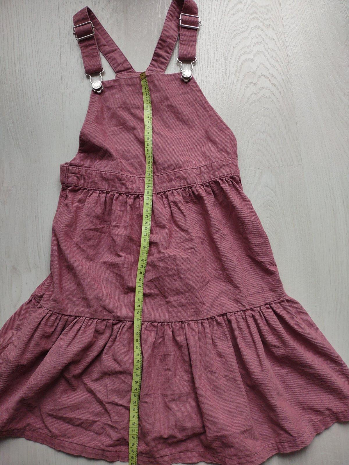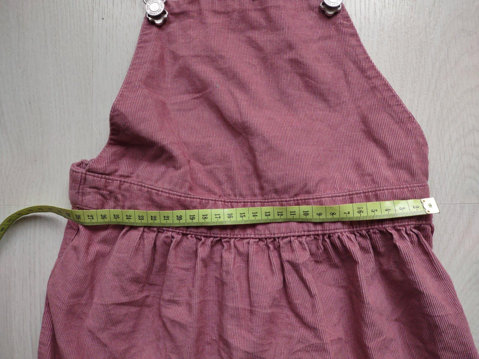 Krásne šaty, bez rukávov, ktoré sa môžu nosiť tak cez leto, ako aj na jeseň alebo cez zimu, keďže sa pod ne môže dať tričko s krátkym alebo dlhým rukávom.Sú ako nové,nestihla ich dcéra vynosiť.Bez žmolkov. Veľkosť na štítku je uvedená 122/128cm. Presné premeranie viď foto.