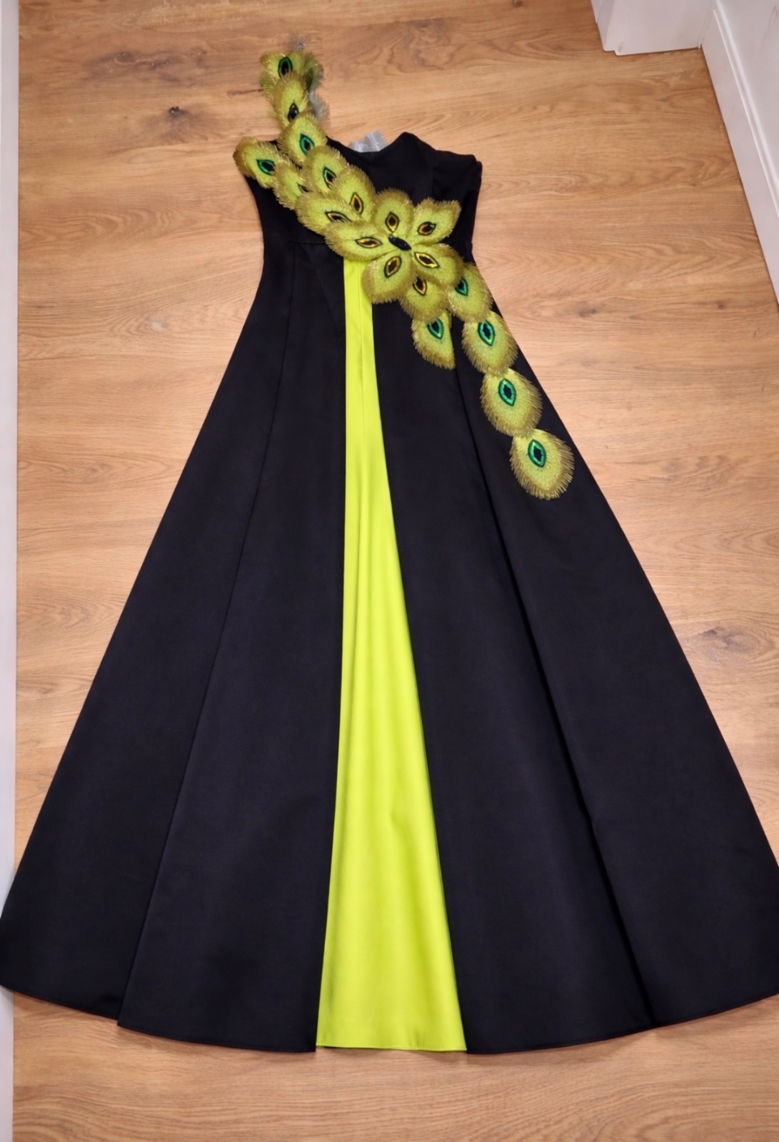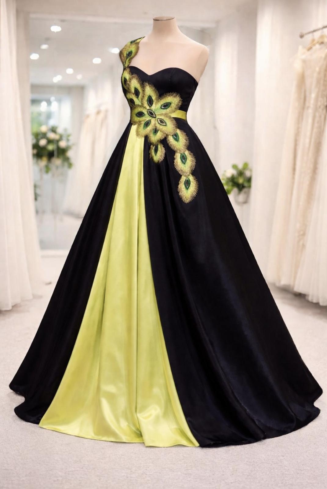 Krásne saténové spoločenské šaty s aplikáciou, netradičné, šité na mieru, aplikácie sa dajú odstrániť. Kvalitný materiál. Oblečené 2 x