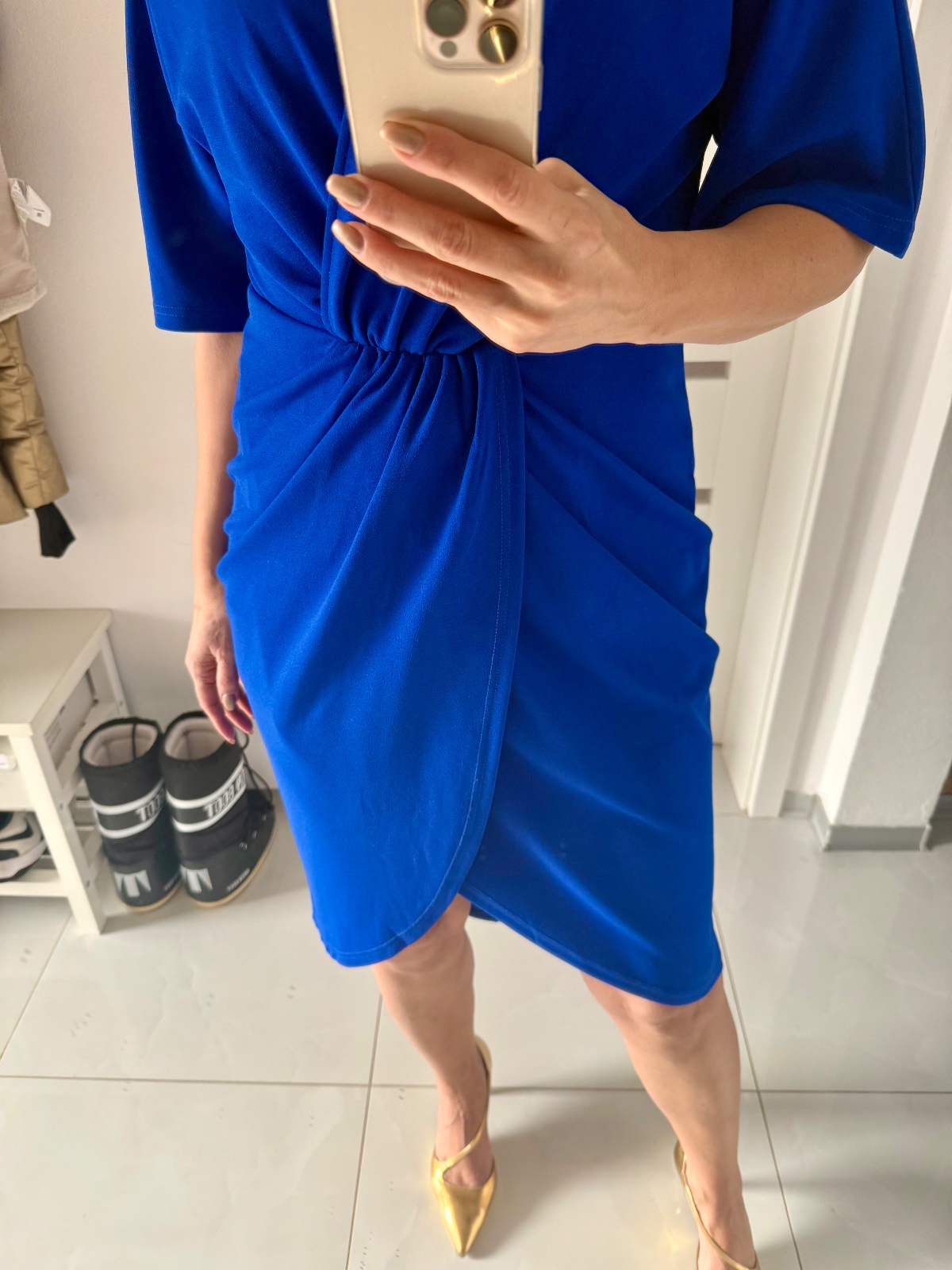 Velmi pohodlné strečové midišaty, podšité, hrubší materiál, dobre sa naťahuje. Zapínanie vzadu na zips. Dĺžka vzadu 124 cm. Pás vkľude 40.