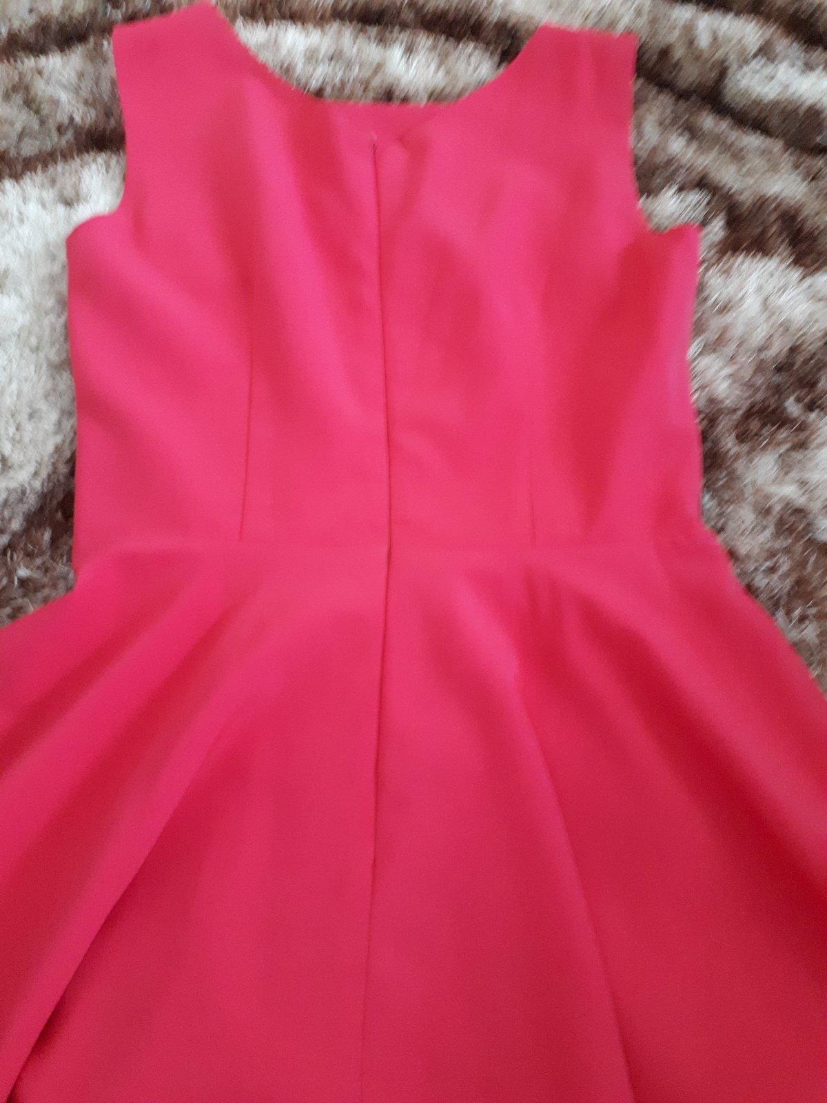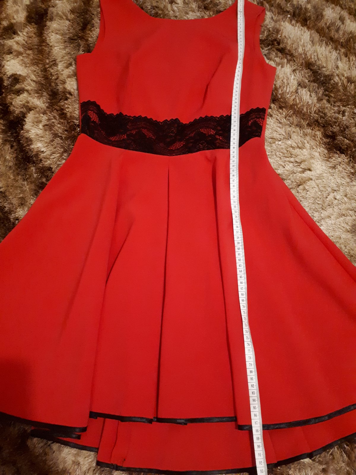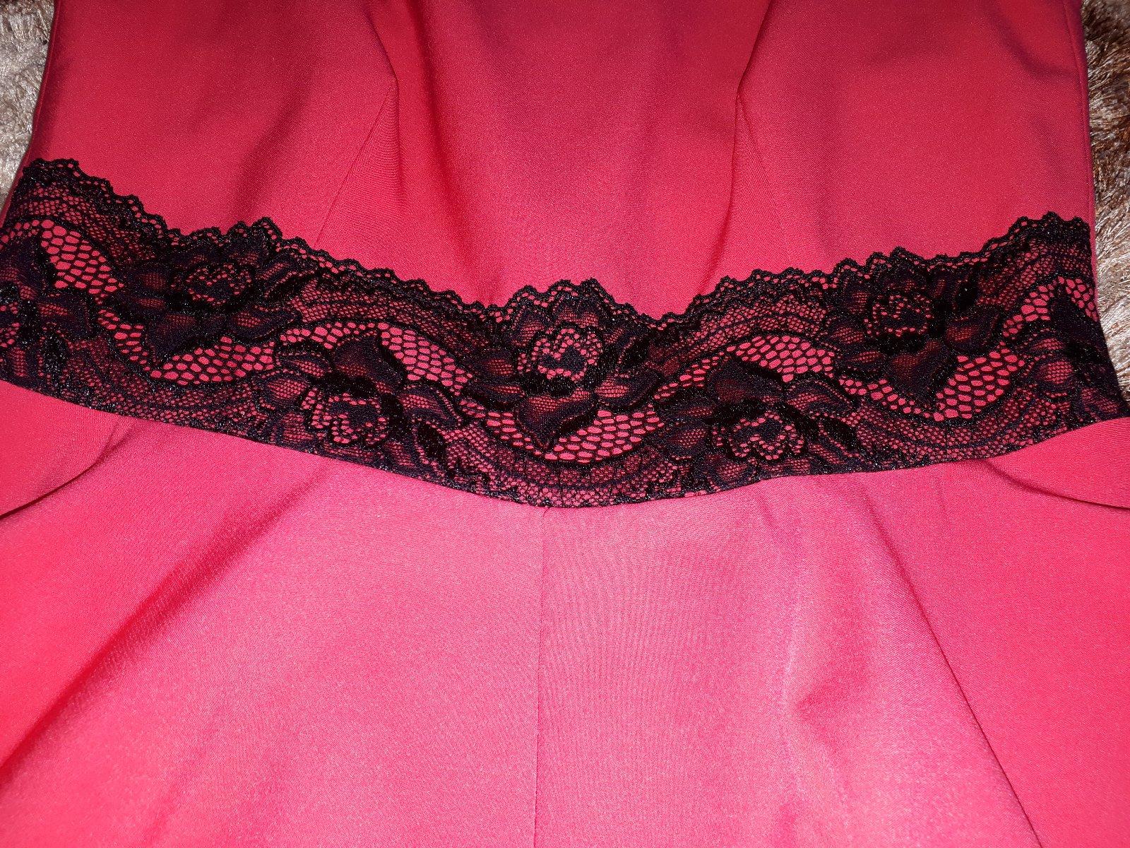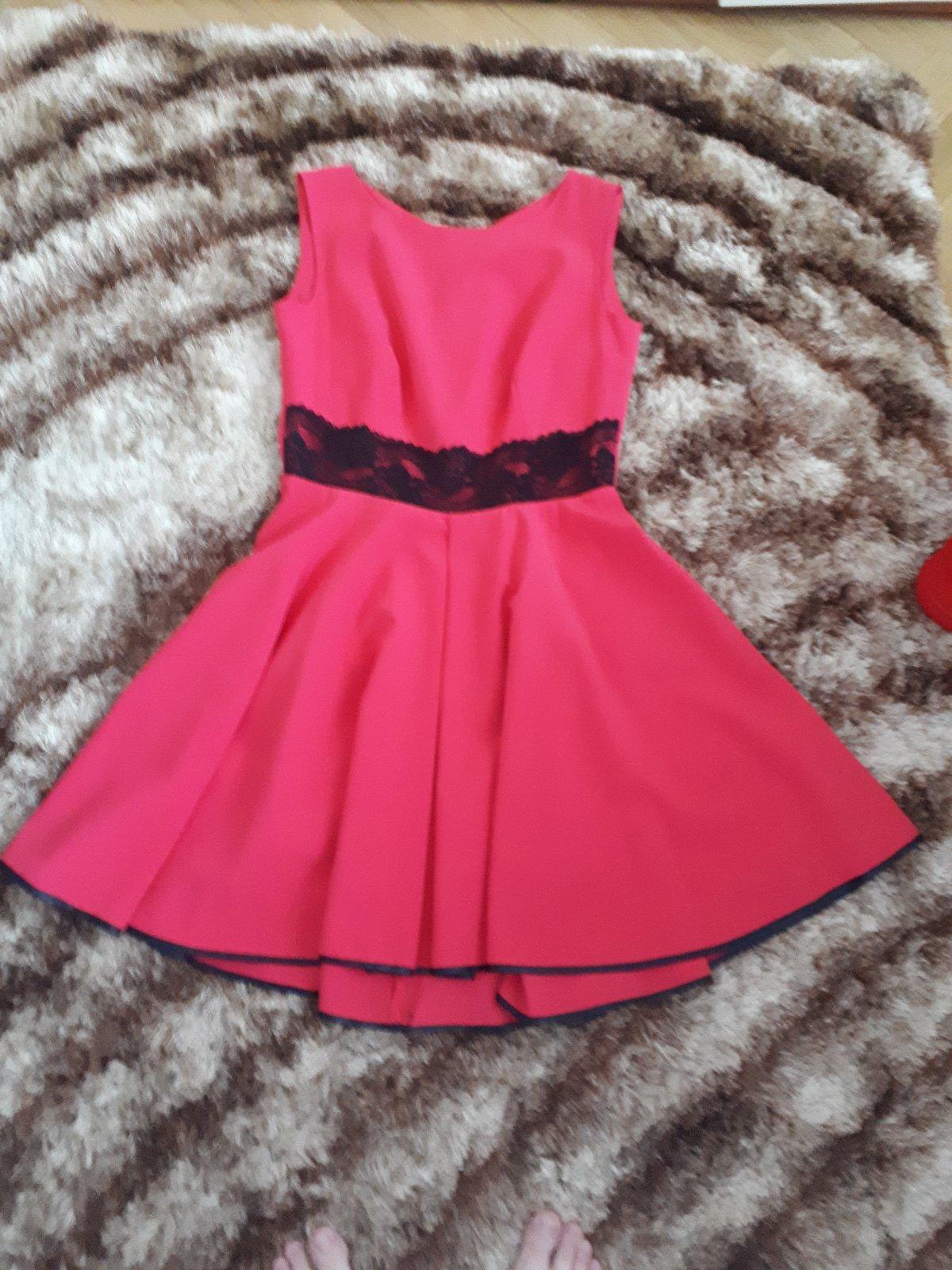 Predám malinove šaty s čiernou čipkou v páse a ciernym lemom okolo dolnej záložky. Šaty majú jednu chybu, na boku sukne je mala časť popalena od žehličky nie je to veľmi viditeľné na foto...nie je to veľké ale radšej upozornim...cena 15 eur, ale možná dohoda