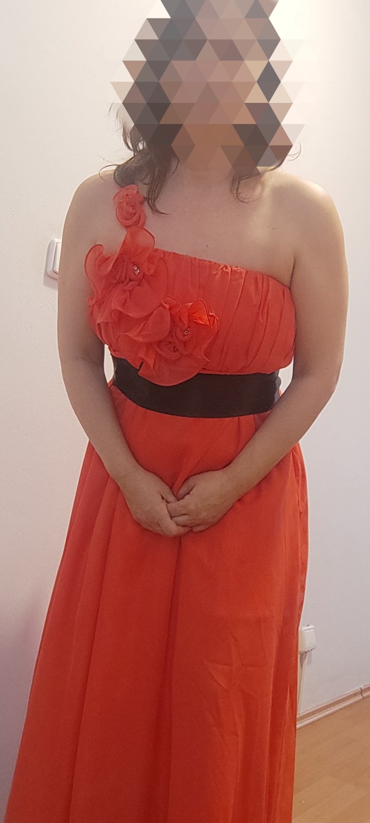 Pekné spoločenské šaty , vhodné na ples, na svadbu. Sú v dobrom stave, dlhšie stáli v skrini. Pribrala som a už sa v nich necítim dobre. Nosím veľkosť 42, výšku 164 cm. Na chrbte sú nažabkované, takže sa krásne prispôsobia postave.