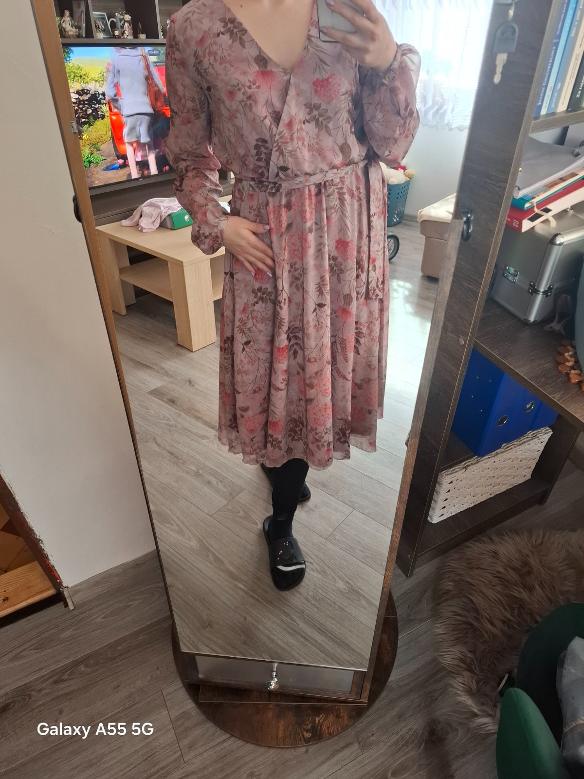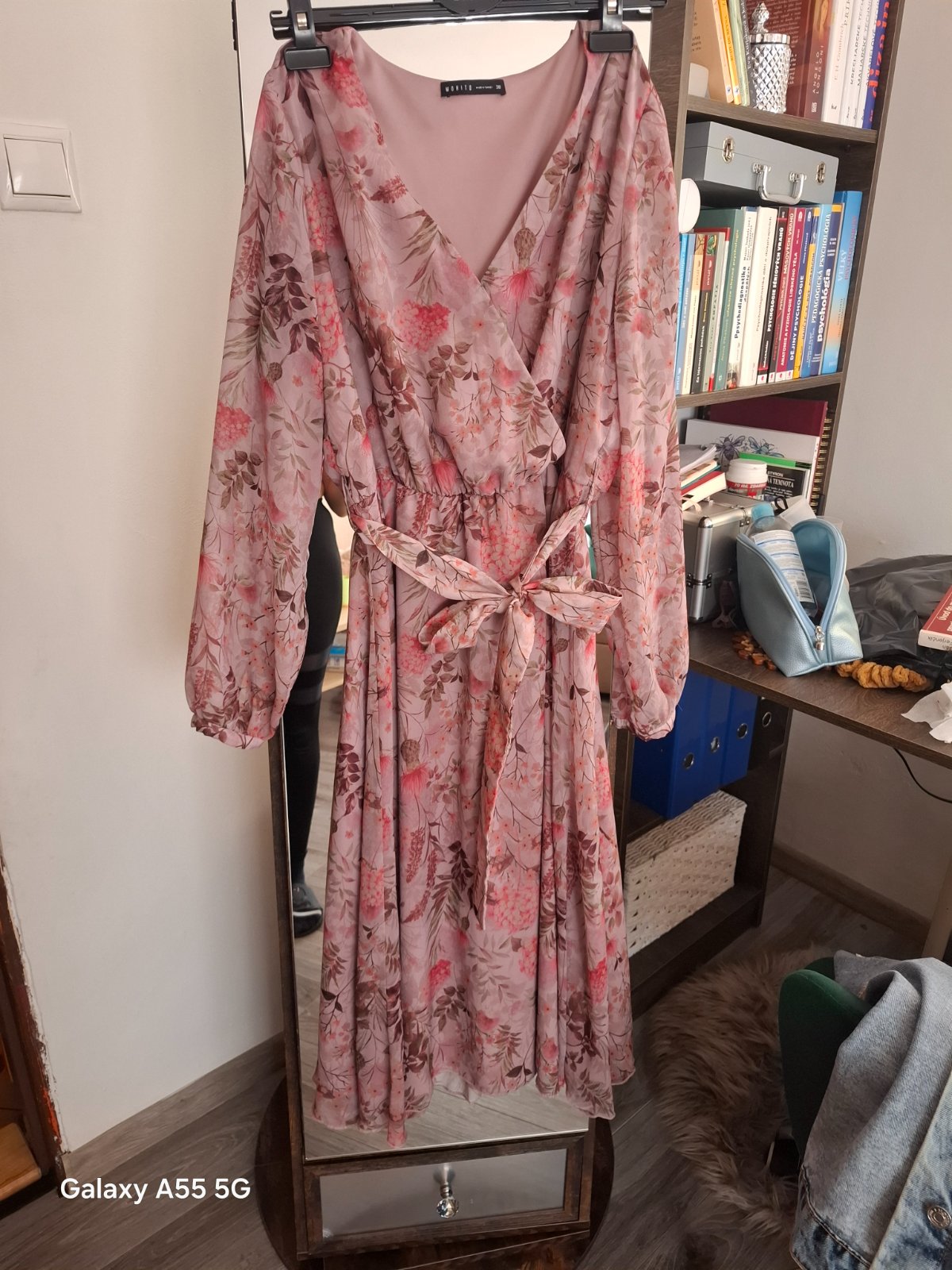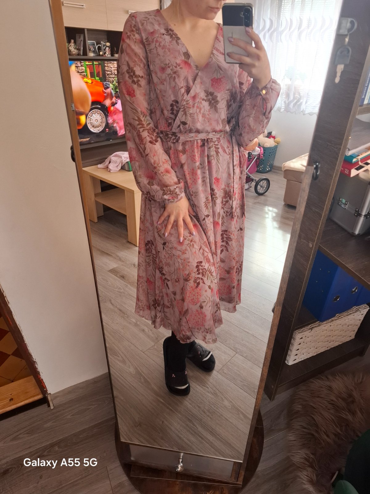 👚 Šaty Mohito, veľkosť M 🌸 Jemná ružová farba ✨ Zavinovací dizajn s volánikom, elastický pás 🎀 Dlhý rukáv, ľahký elastický materiál ⚠️ Malý defekt (dierka) – detail na poslednej foto 👌 Vhodné na bež...