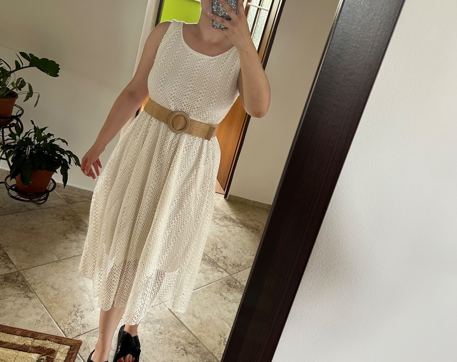krasne biele saty,vynosite aj k teniskam aj k opatkom,krasny detail na pase,predavam lebo mne su velke