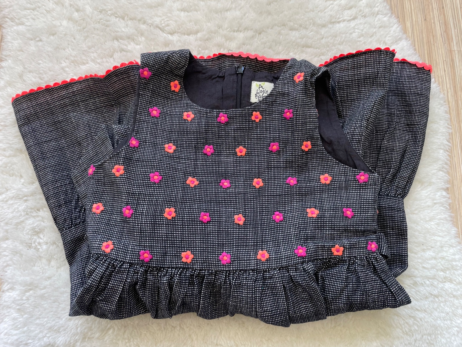 Cierno biele saty s vysivanymi kvetinkami