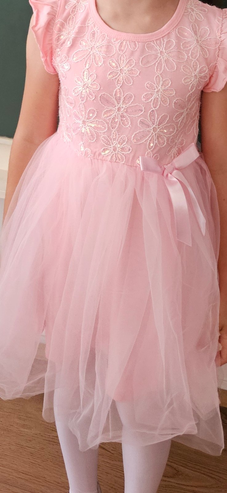 Nadherne satocky s bohatou suknickou pre princezne. Boli oblecene dvakrat chvilu. Raz na foteni a raz v skole na konci roka. Velkost pisana 128 ale podla mna 122 alebo nieco medzi. Su top stav. Kvalitne.